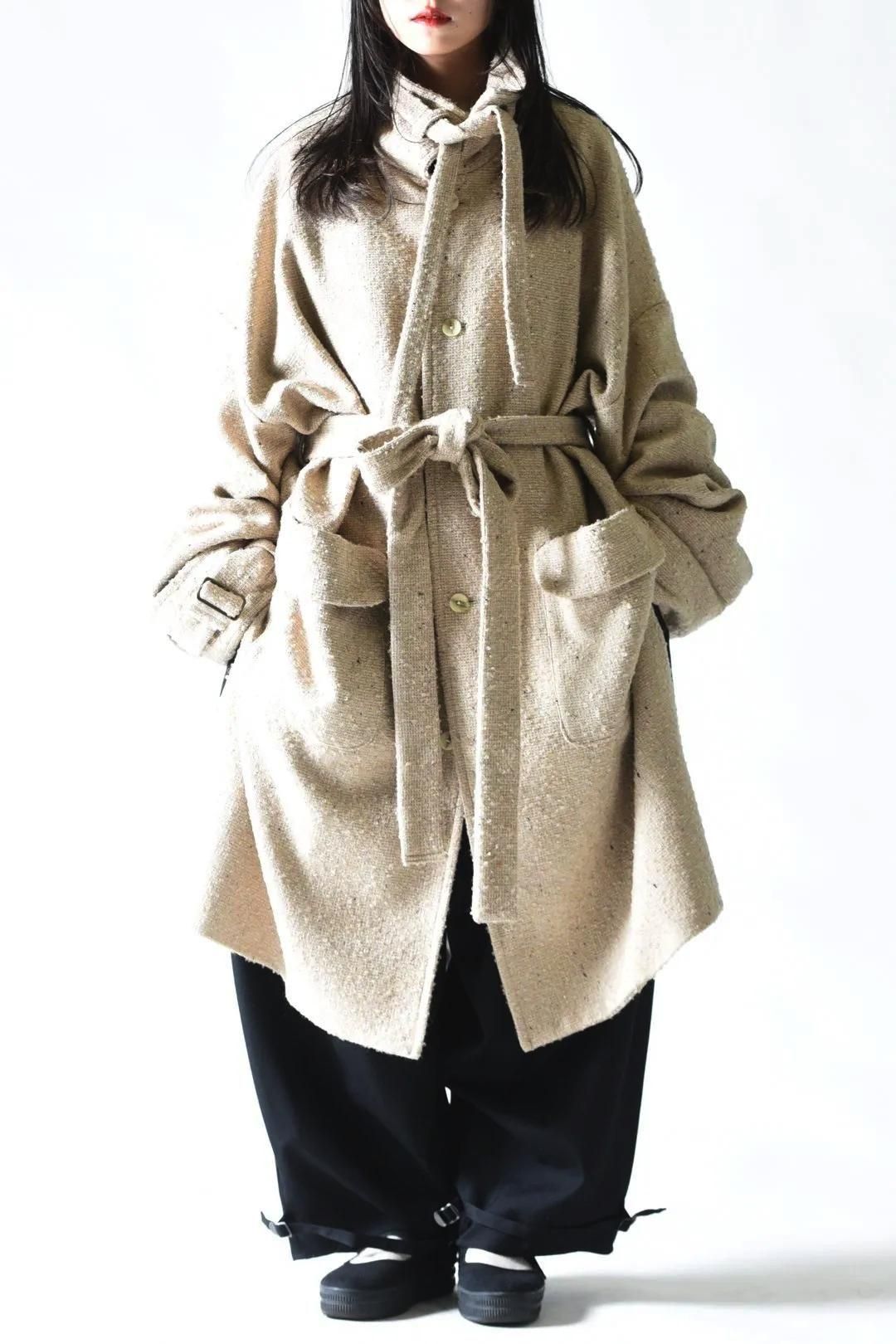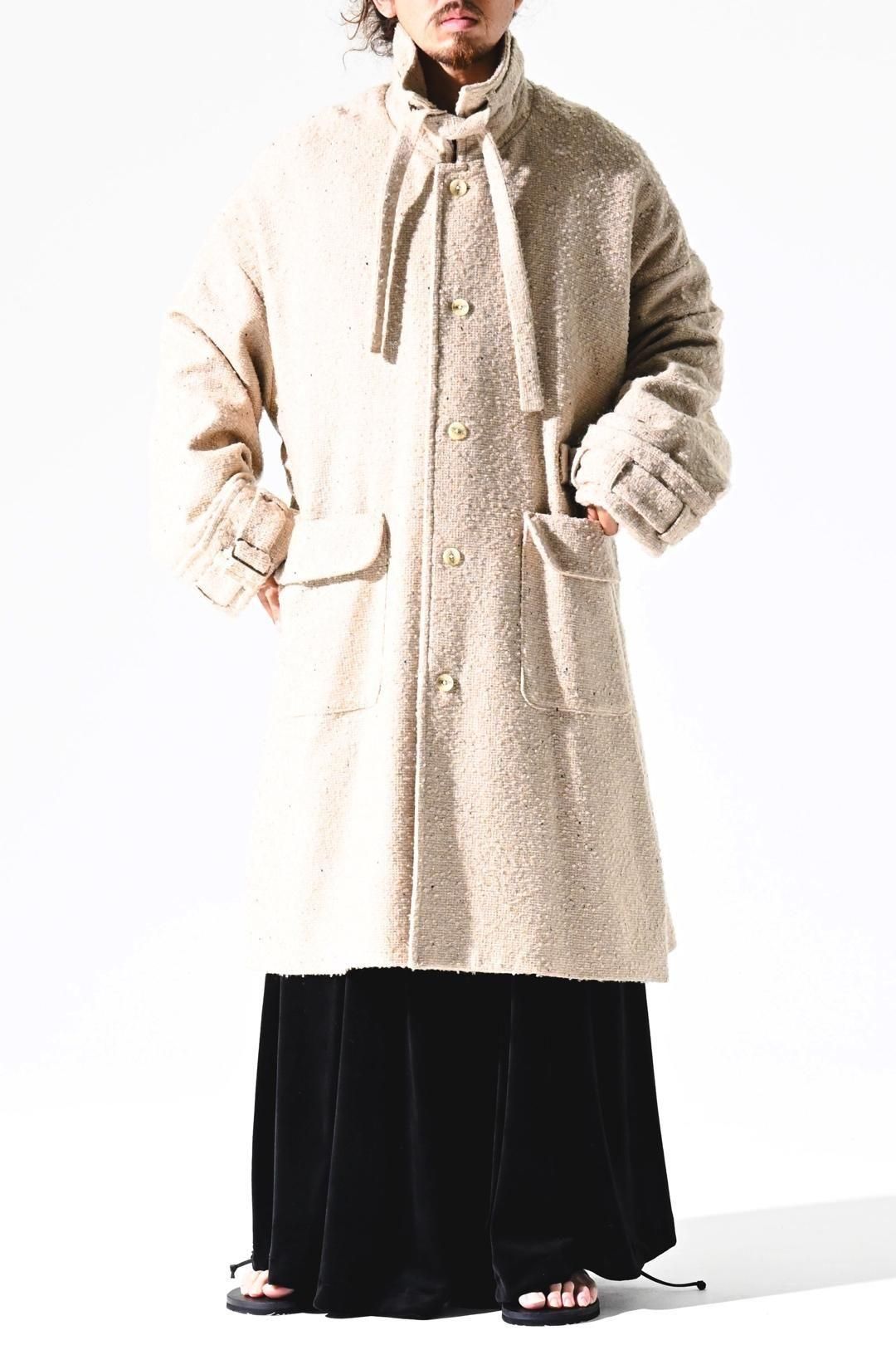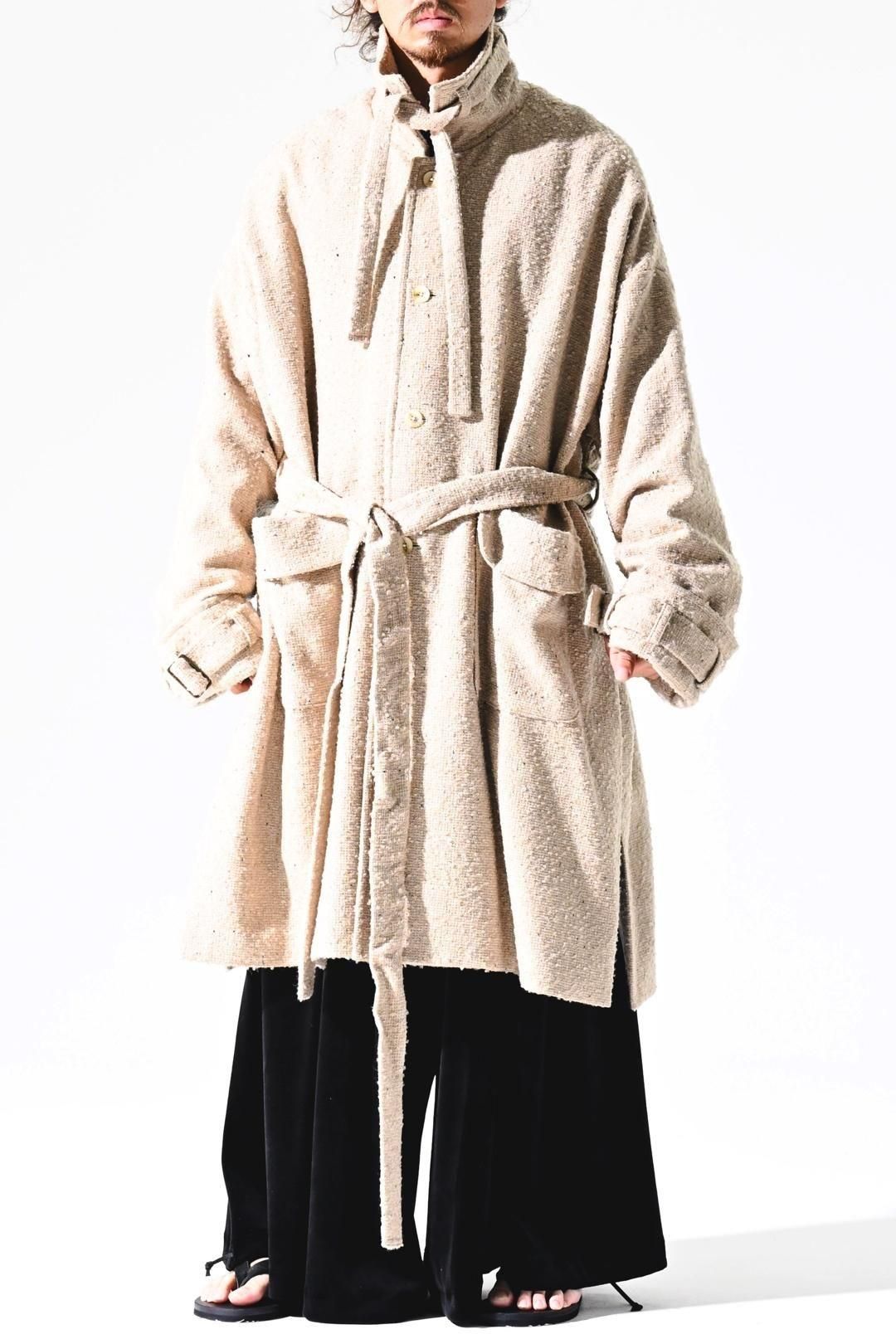 この紐を結んで頂くことでスタンドカラーコートとしてお召し頂けます。