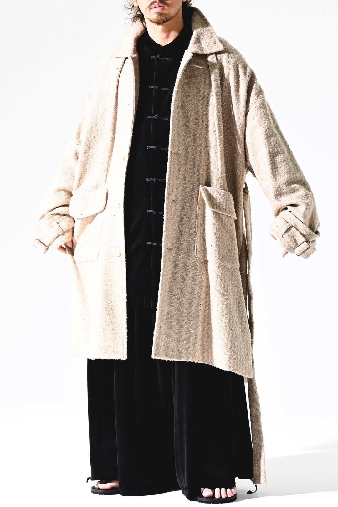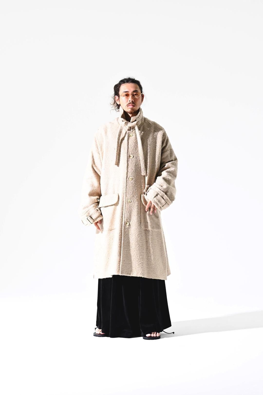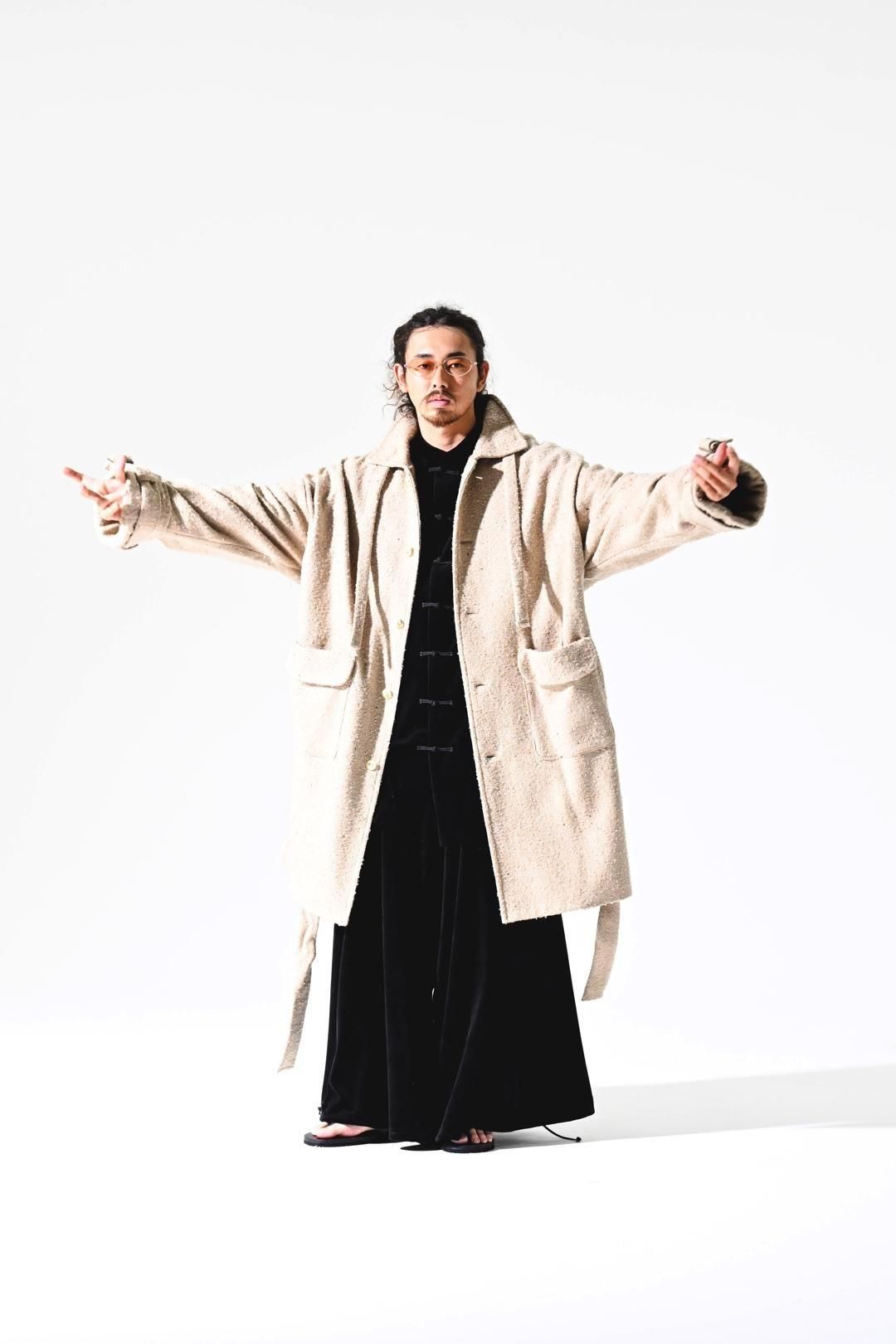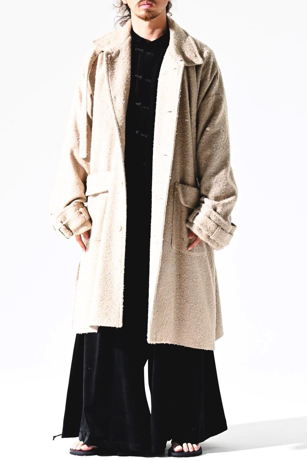 無地の一種類の生地のみの構成ながら、随所に拘りを詰め込むことで他には無いコートに仕上げられています。