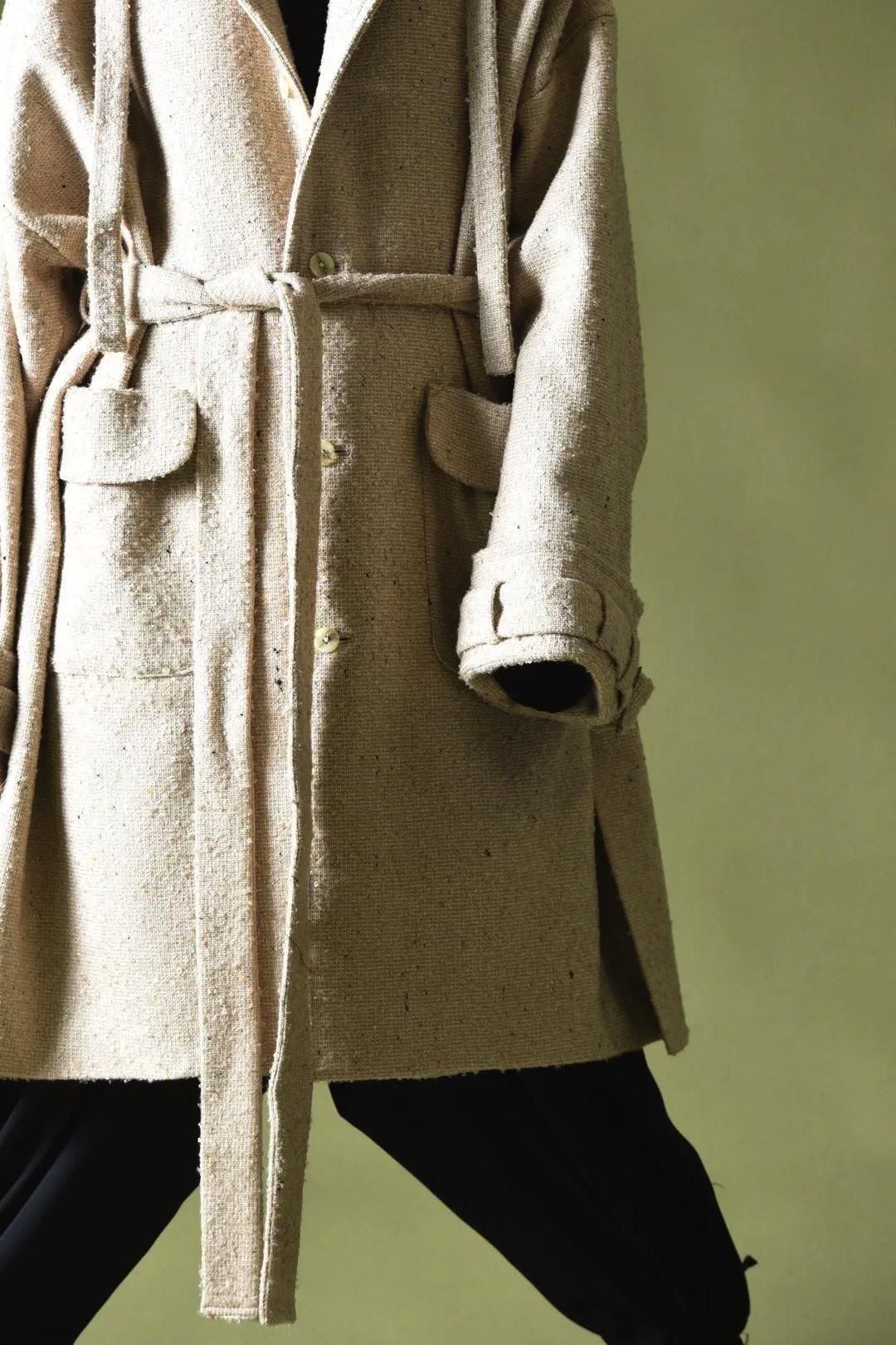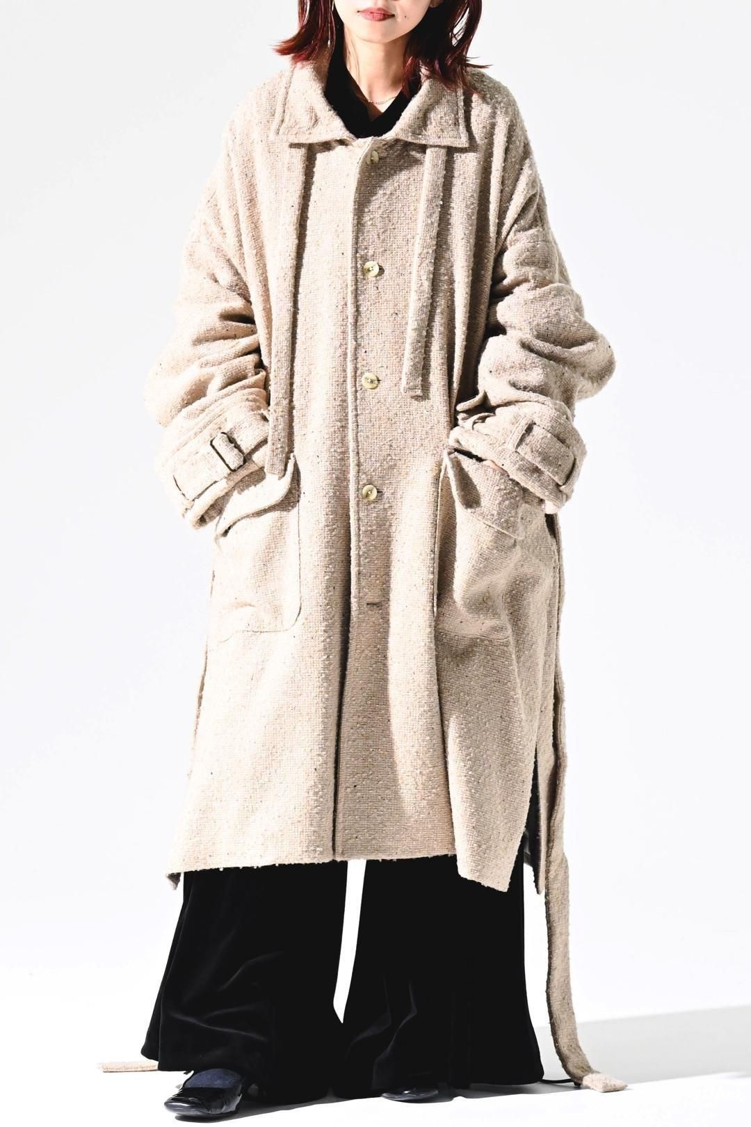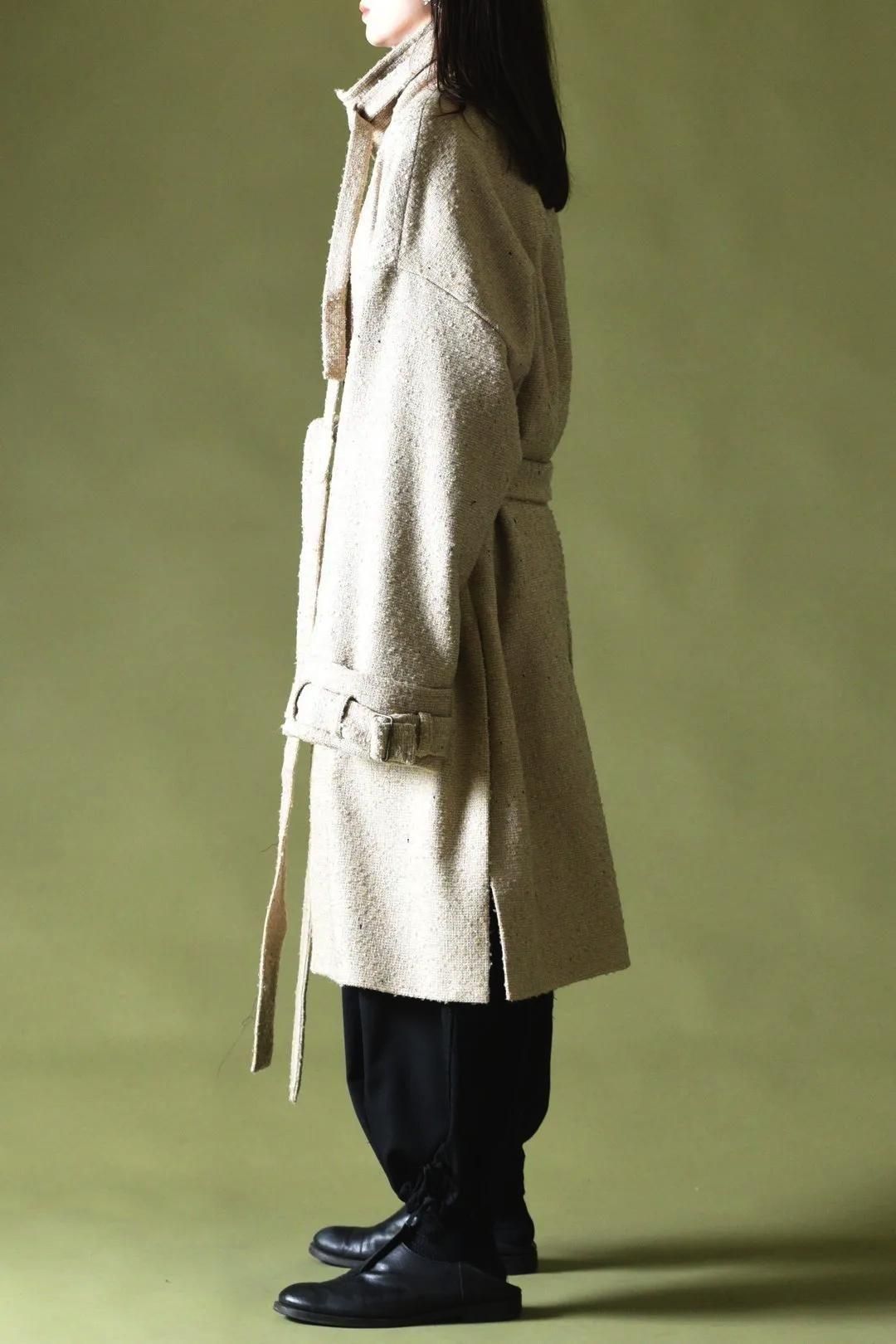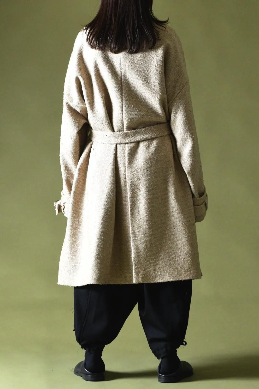 無地の一種類の生地のみの構成ながら、随所に拘りを詰め込むことで他には無いコートに仕上げられています。