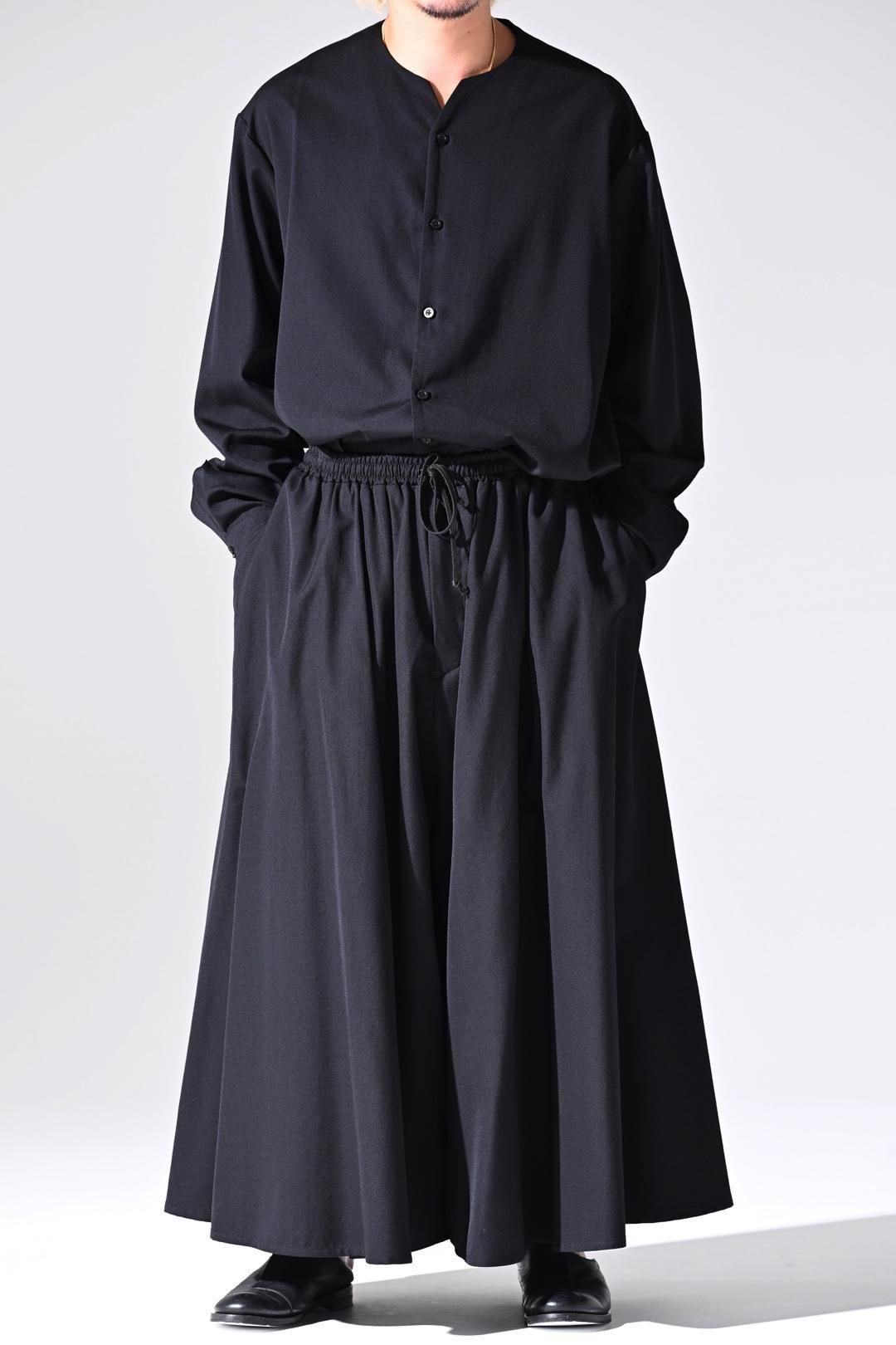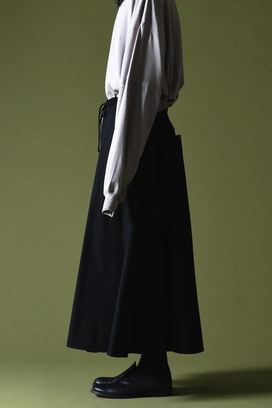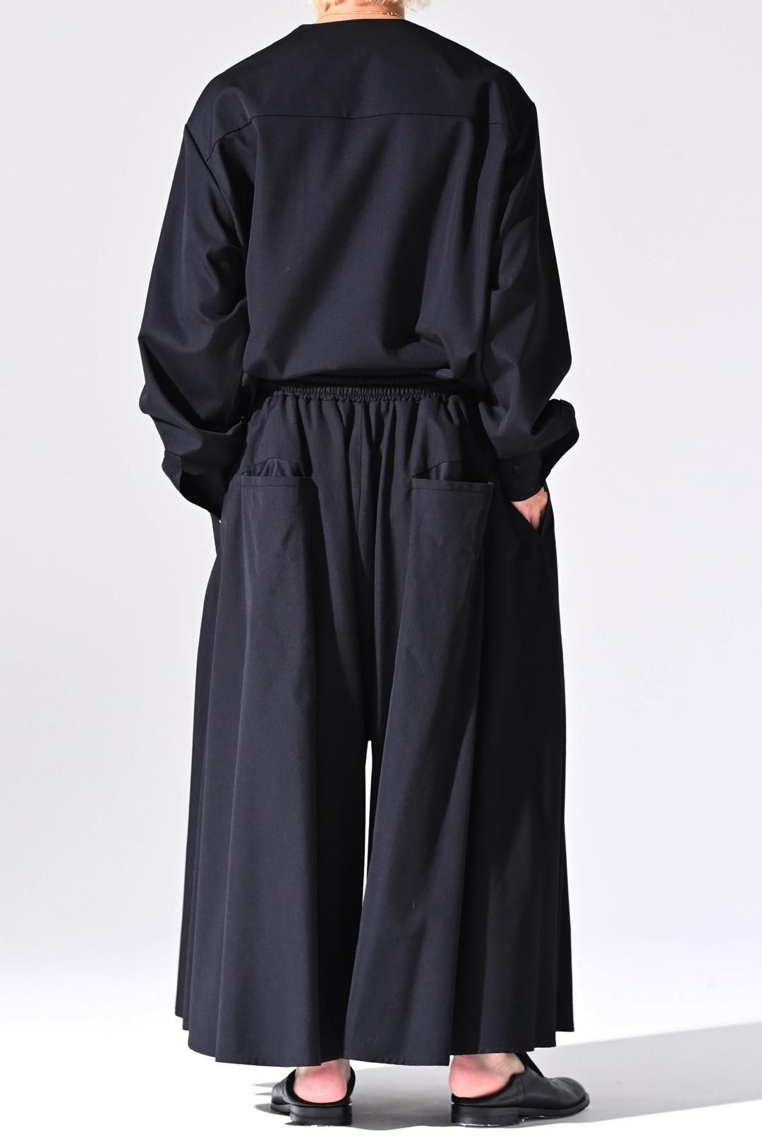 裾幅一周190cmに設定し、良質なウールギャバジンを生地分量多く使用して仕立てられたドレープパンツ。