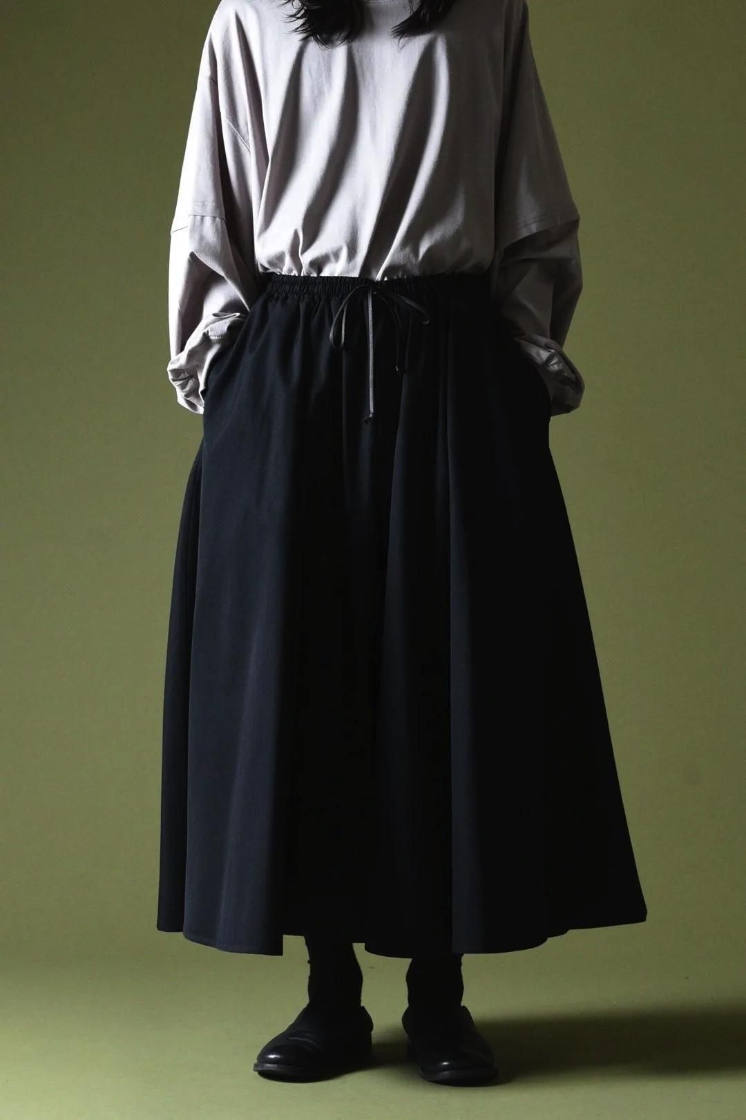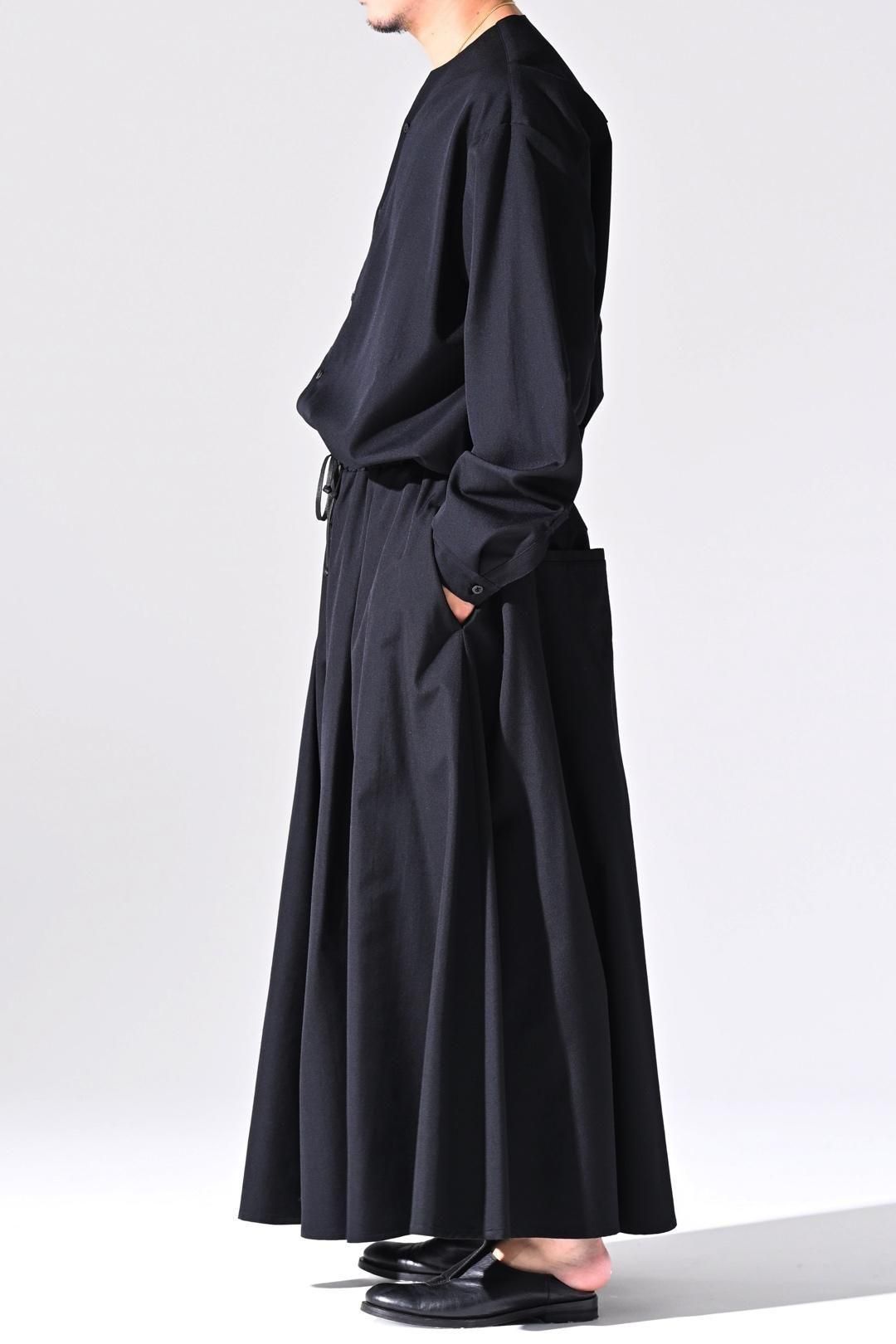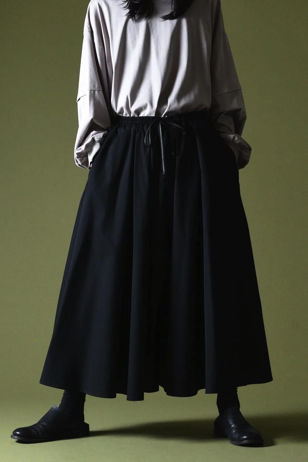 裾幅一周190cmに設定し、良質なウールギャバジンを生地分量多く使用して仕立てられたドレープパンツ。