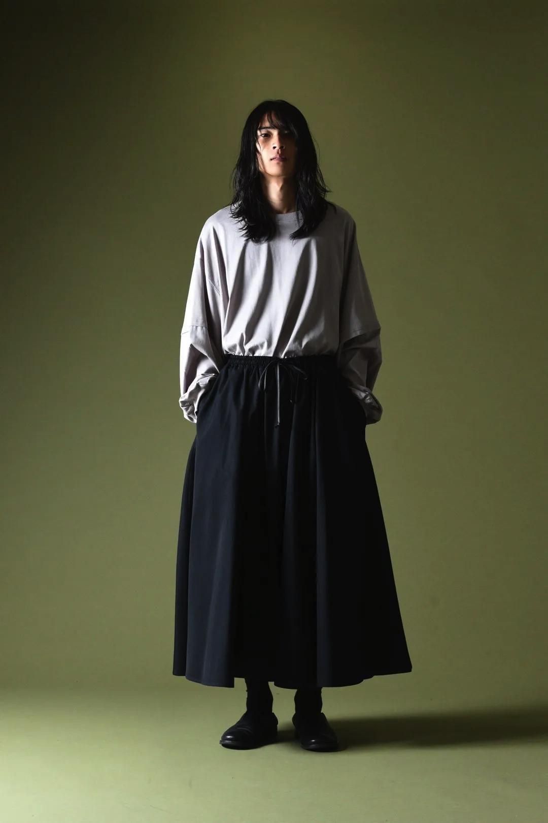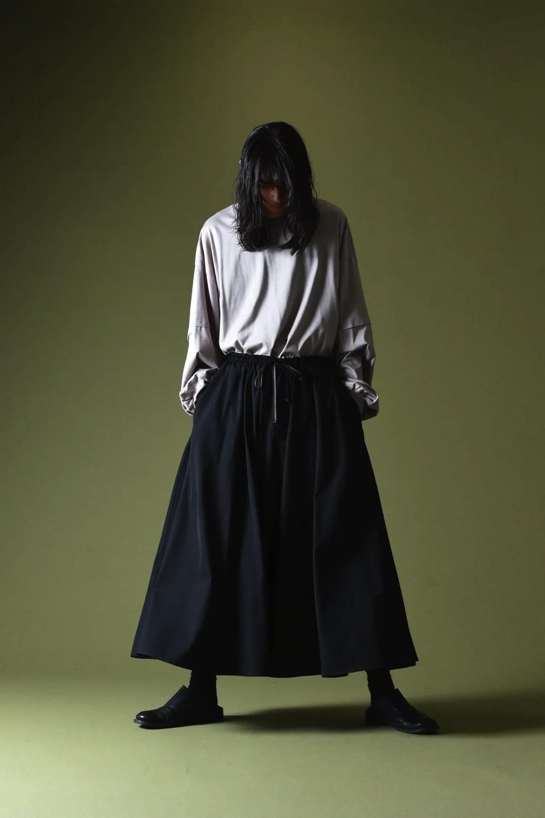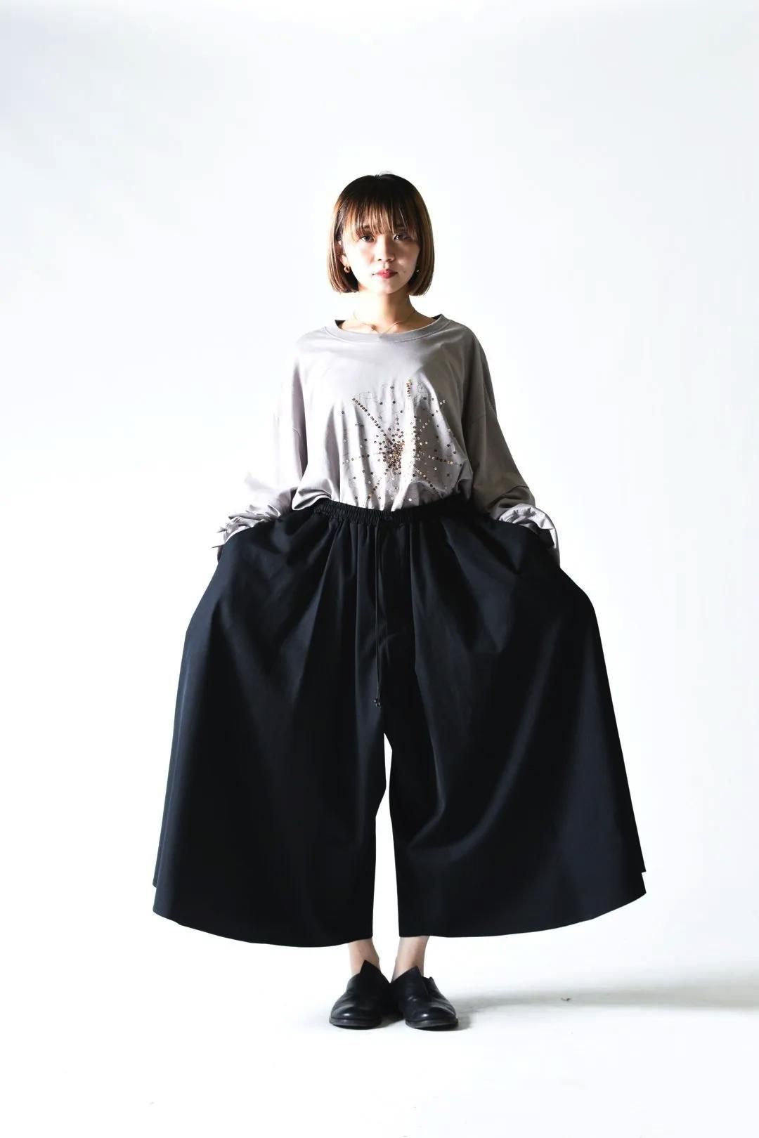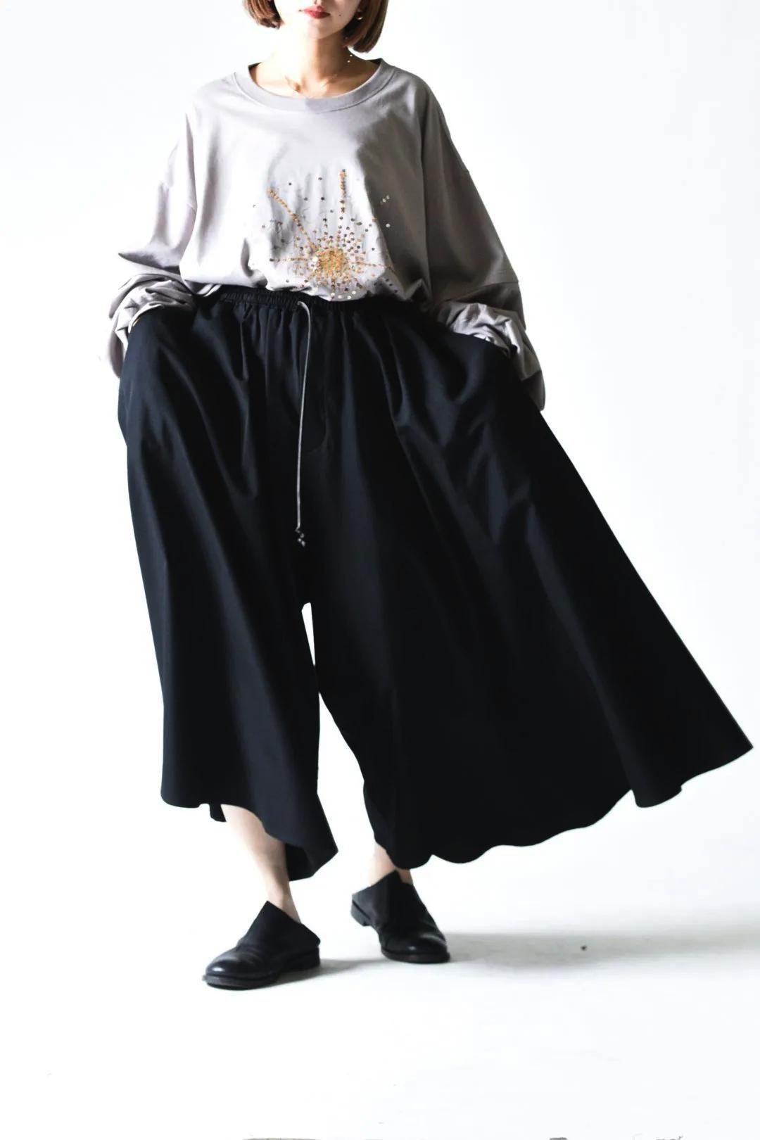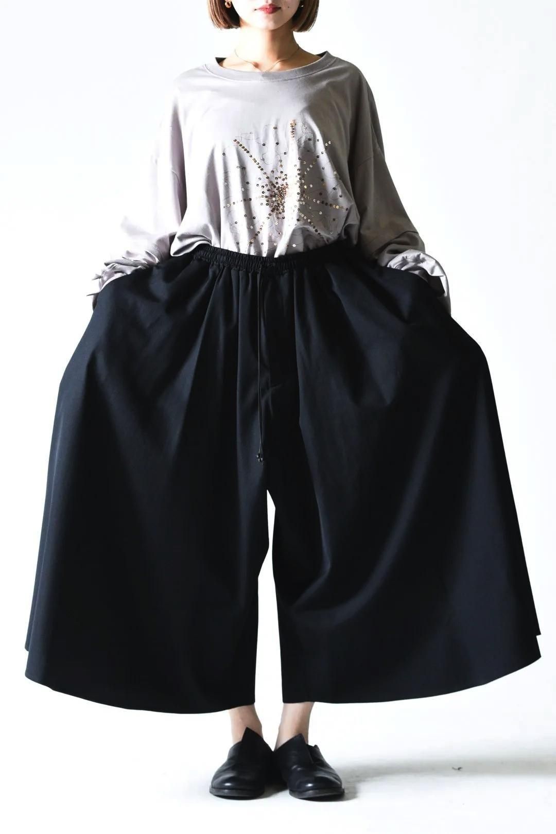 前後左右どの角度から見てもドレープが確認出来るほどのワイドパンツです。