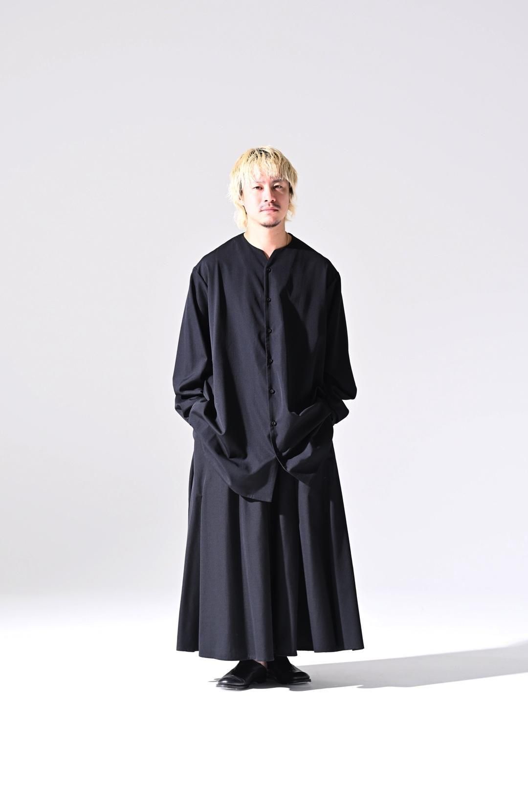 ウールギャバジンという、ドレープの美しい生地を目一杯お楽しみ頂くためのデザイン。