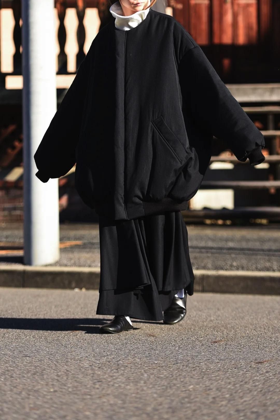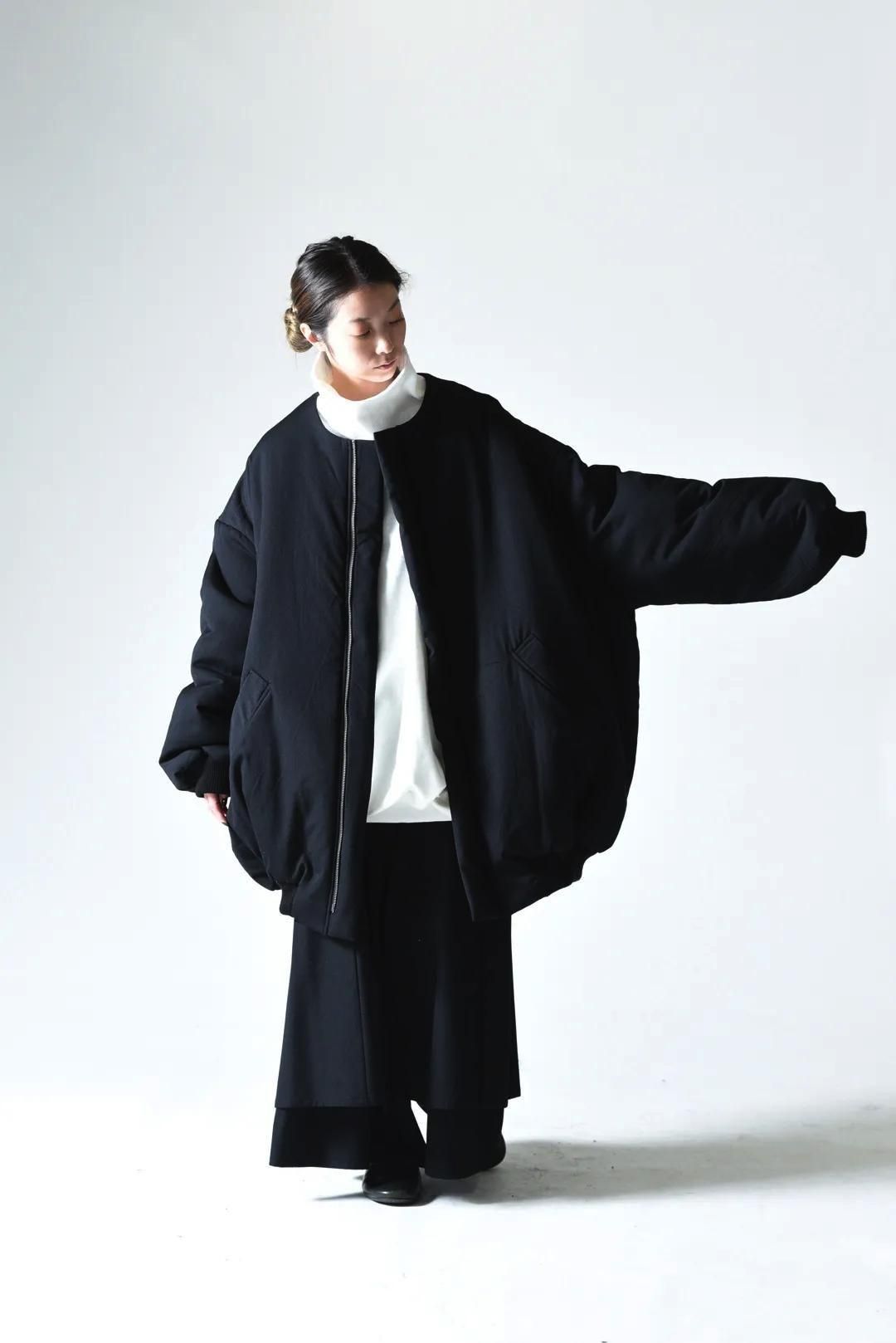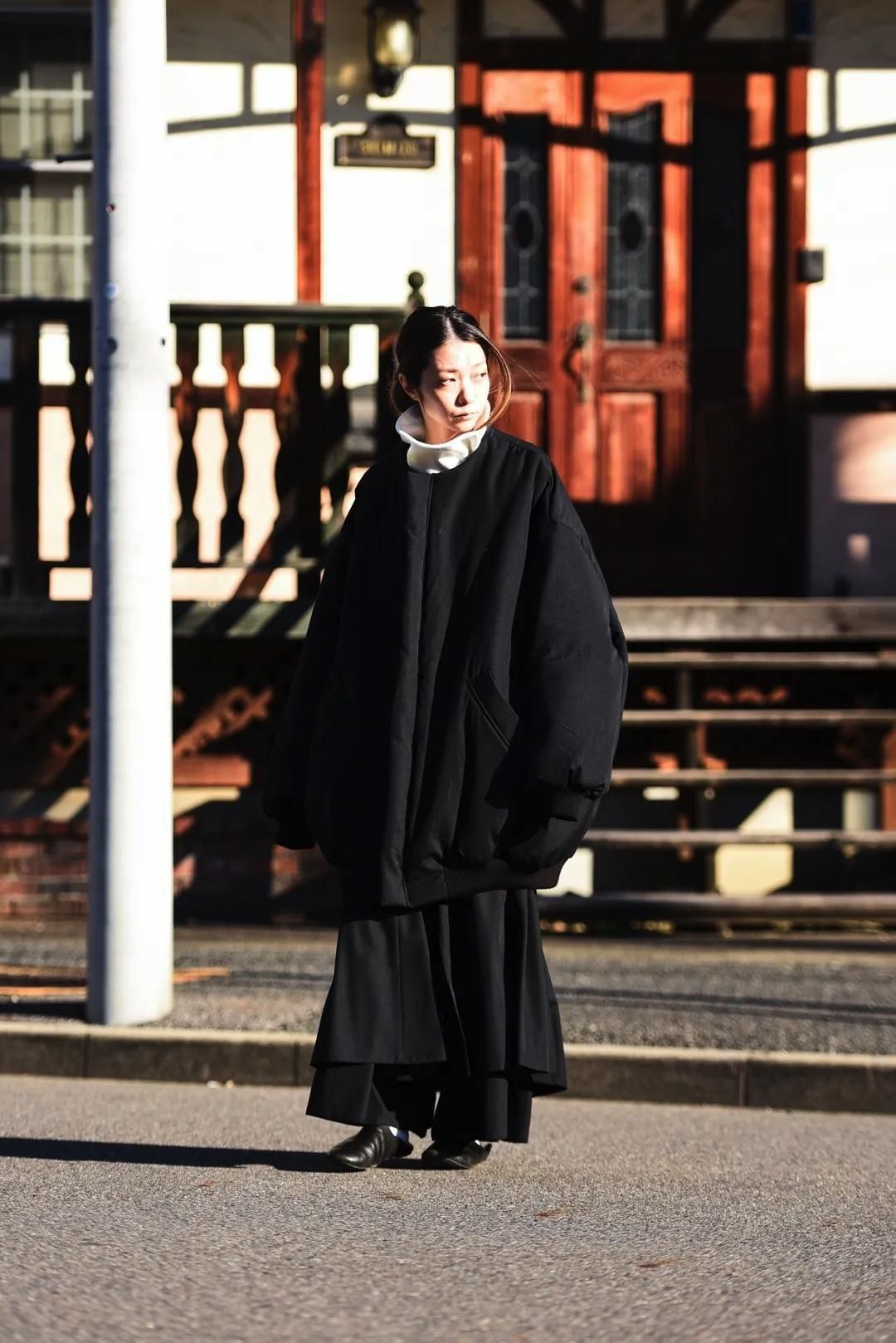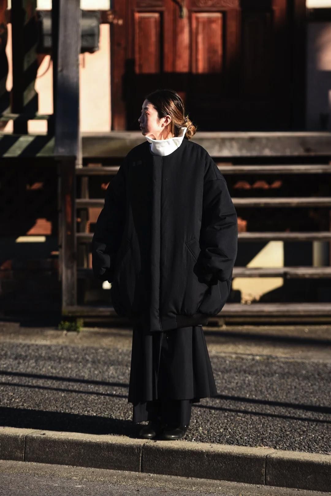 インナーに厚手のニットを着込めるほどにオーバーなサイジングで制作されています。