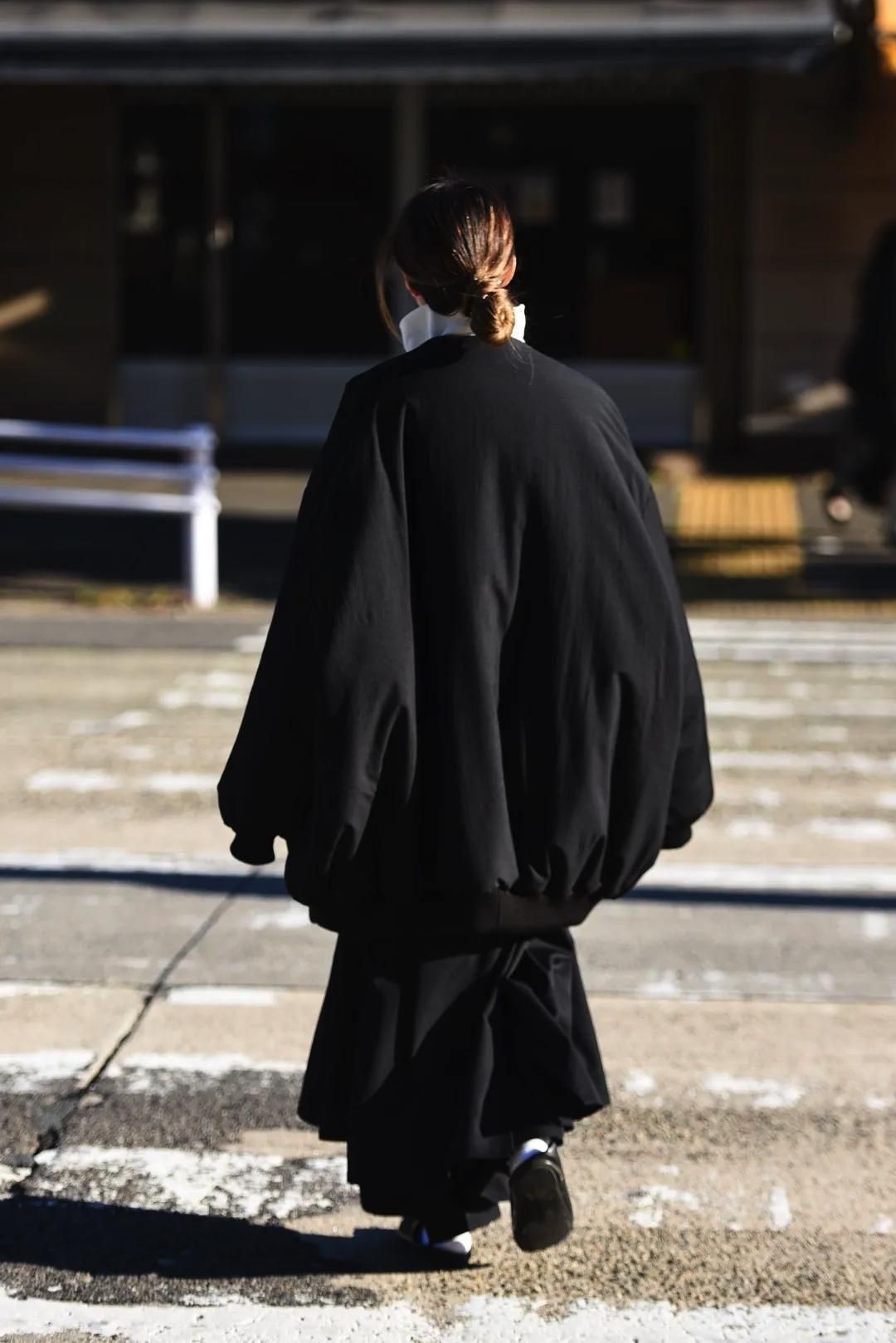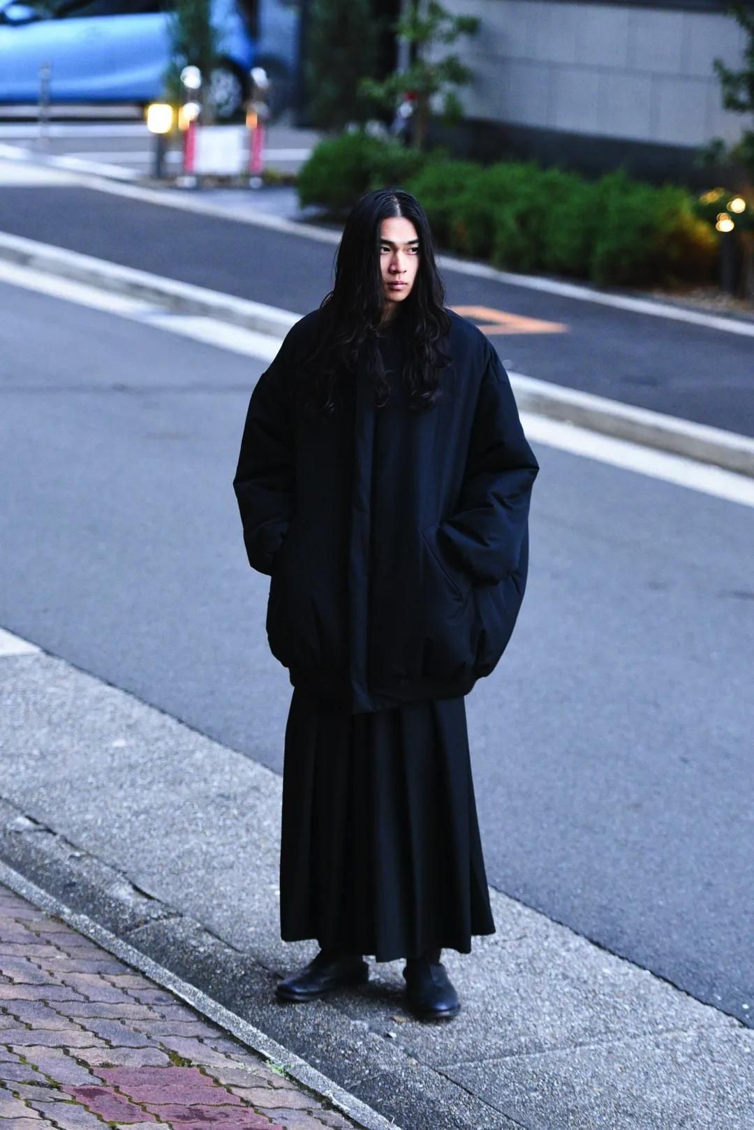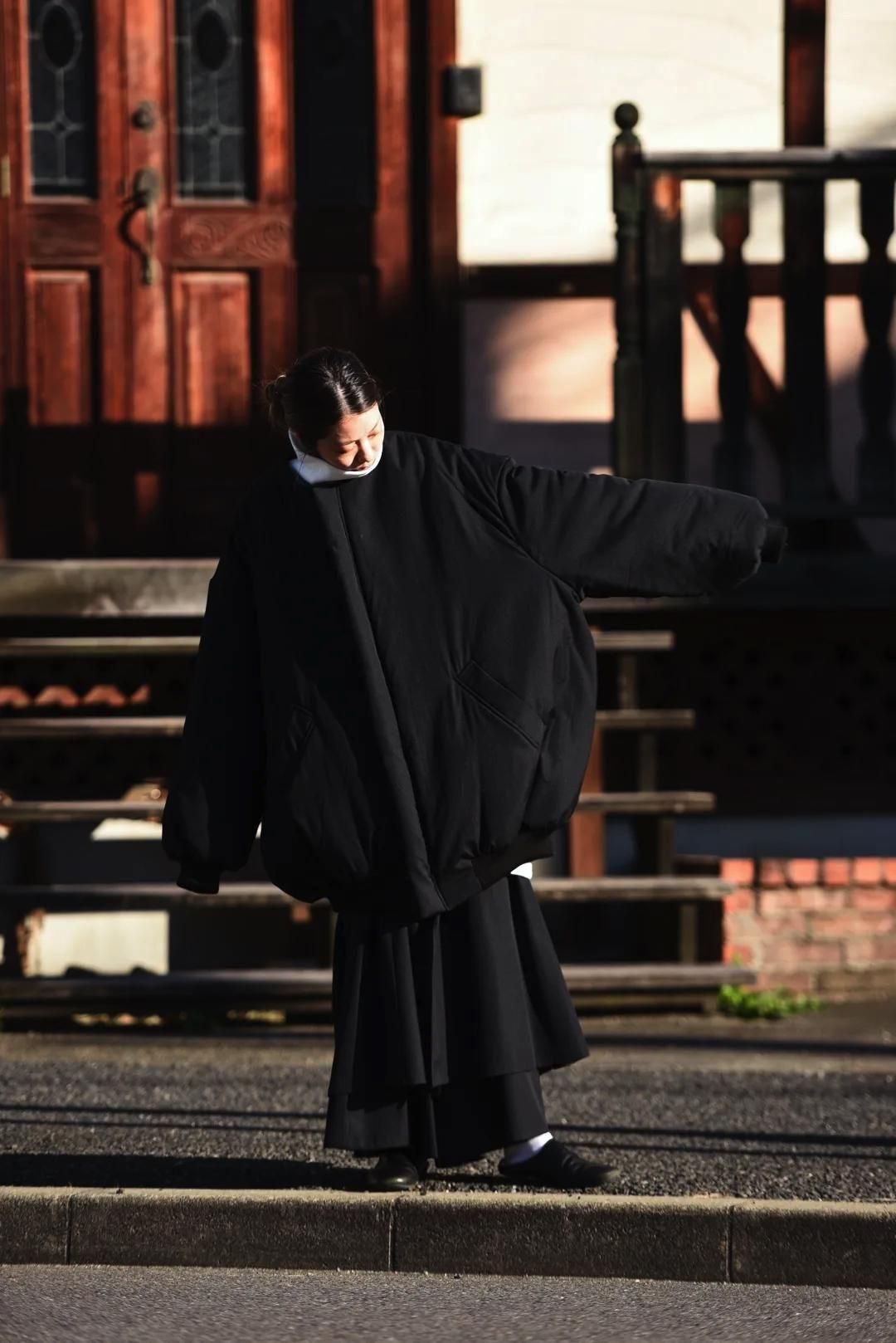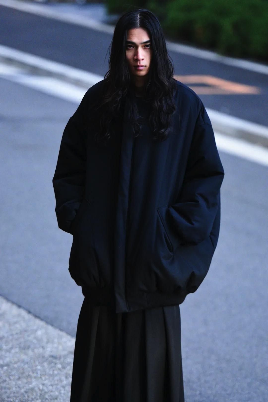 インナーに厚手のニットを着込めるほどにオーバーなサイジングで制作されています。