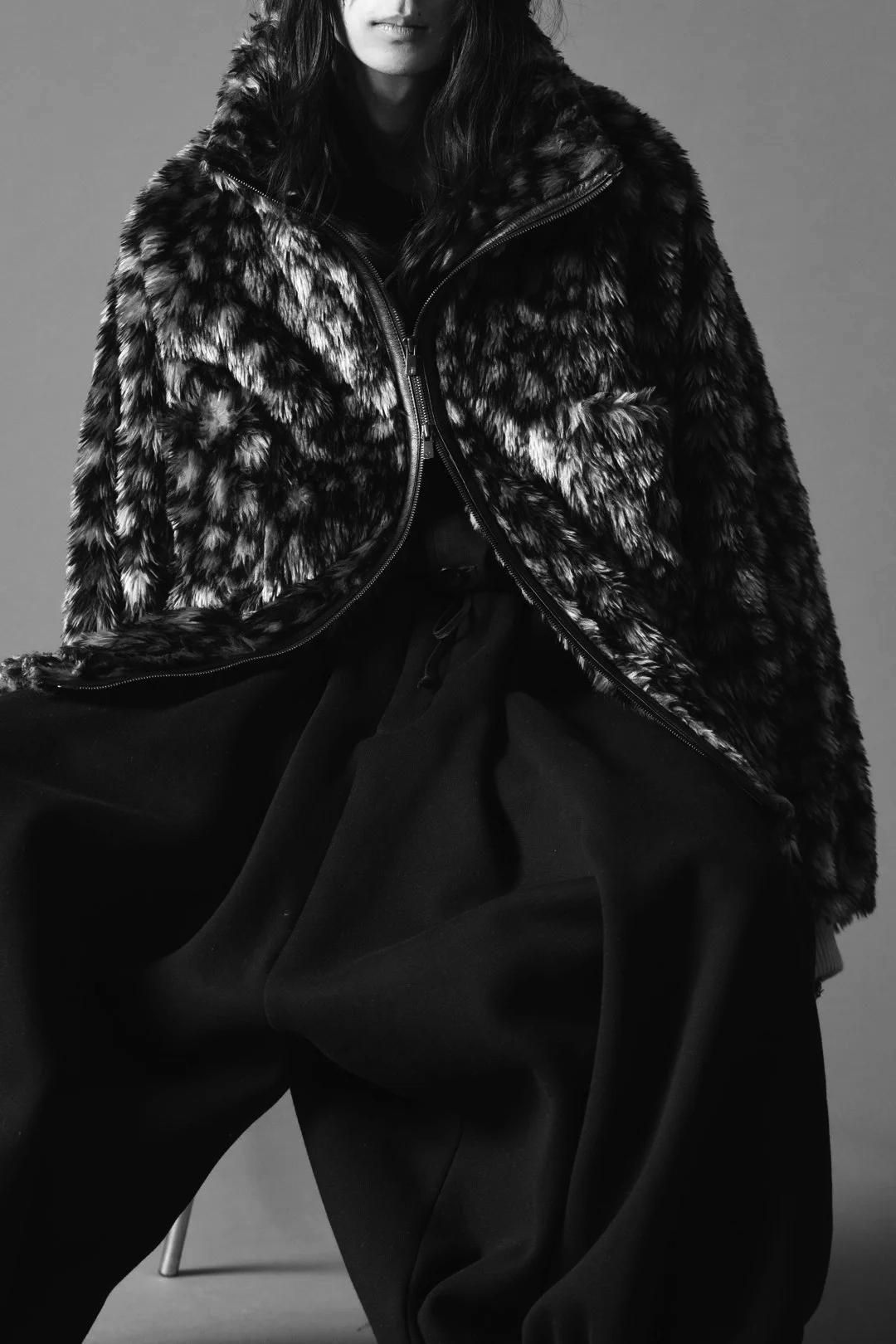冬らしく暖かな表情と品ある雰囲気を持つファイクファーを使用し、