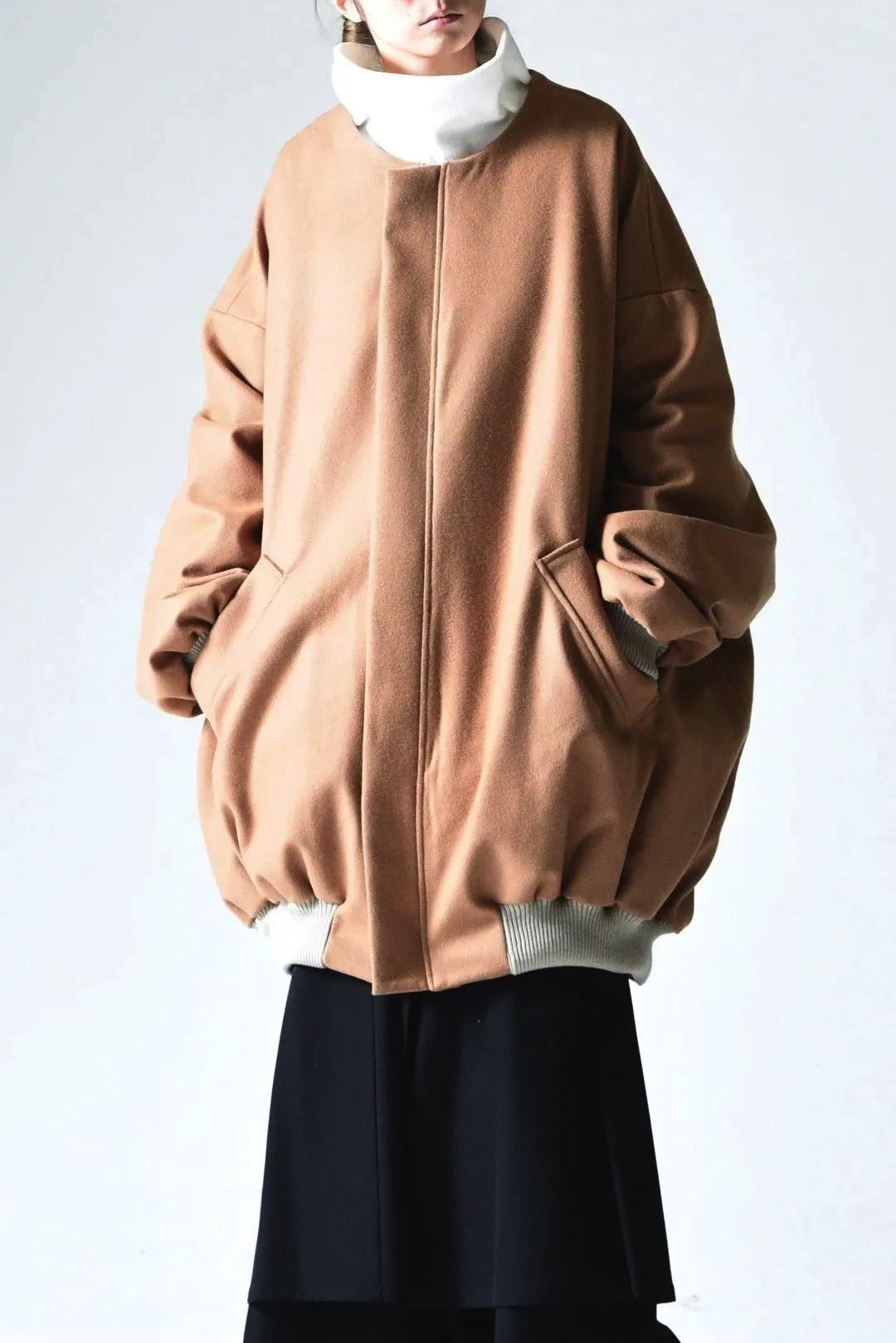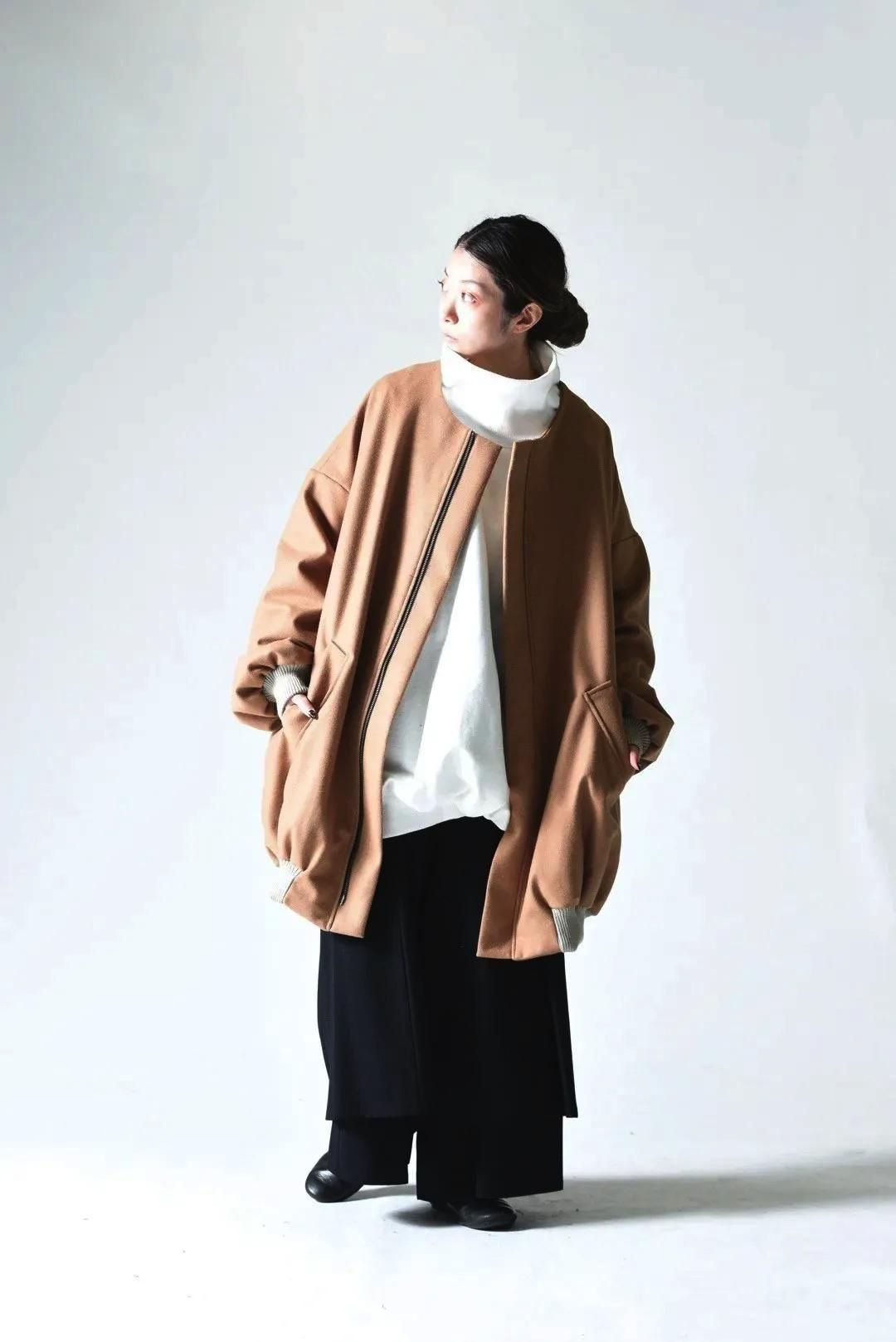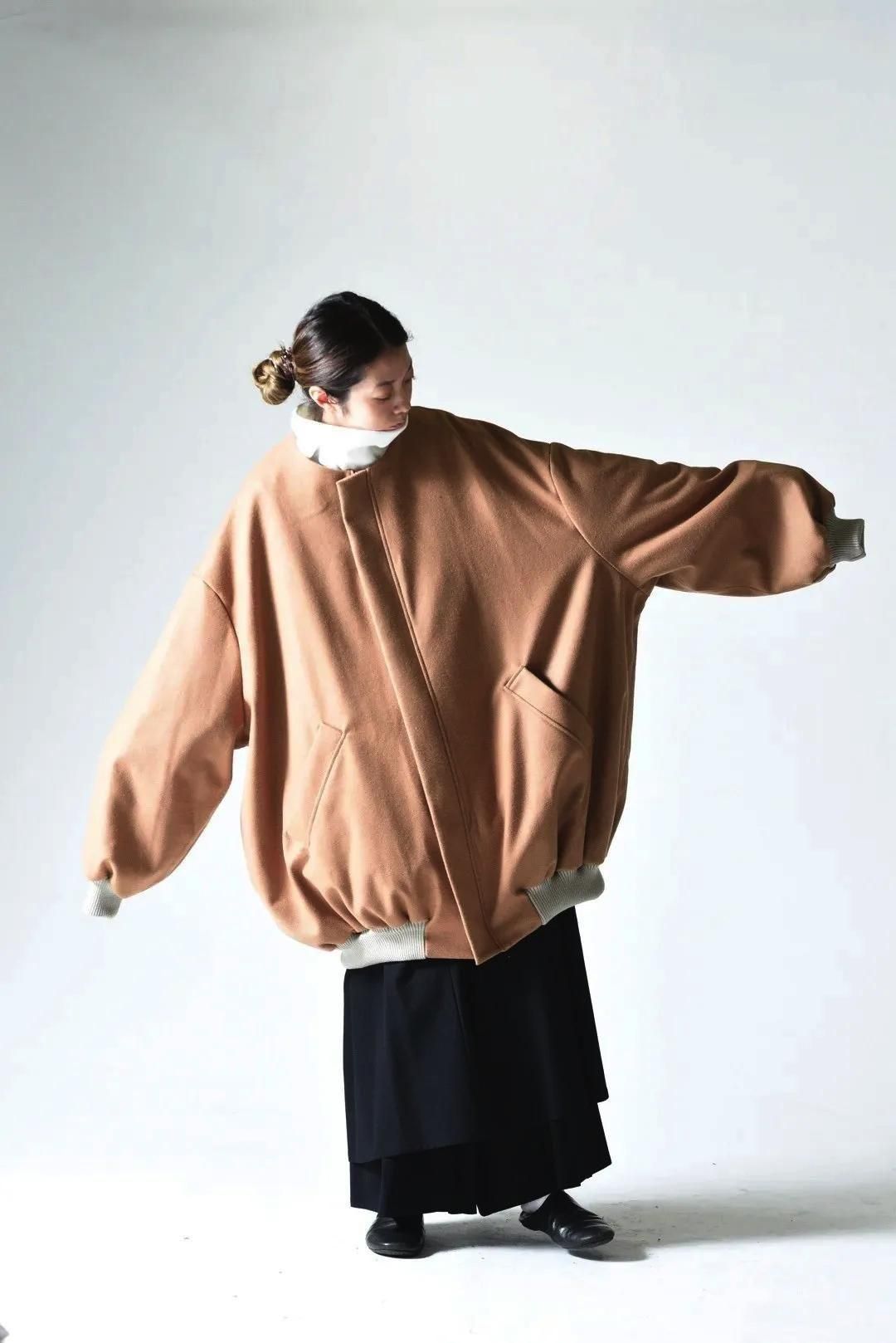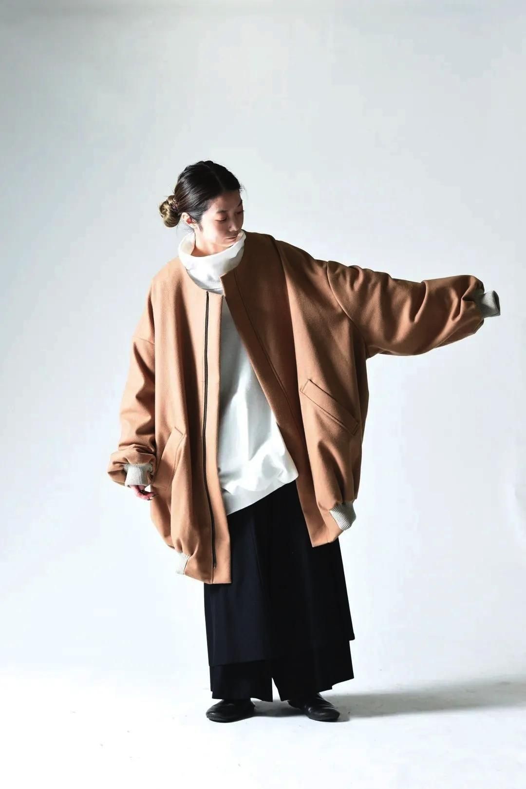インナーに厚手のニットを着込めるほどにオーバーなサイジングで制作しております。