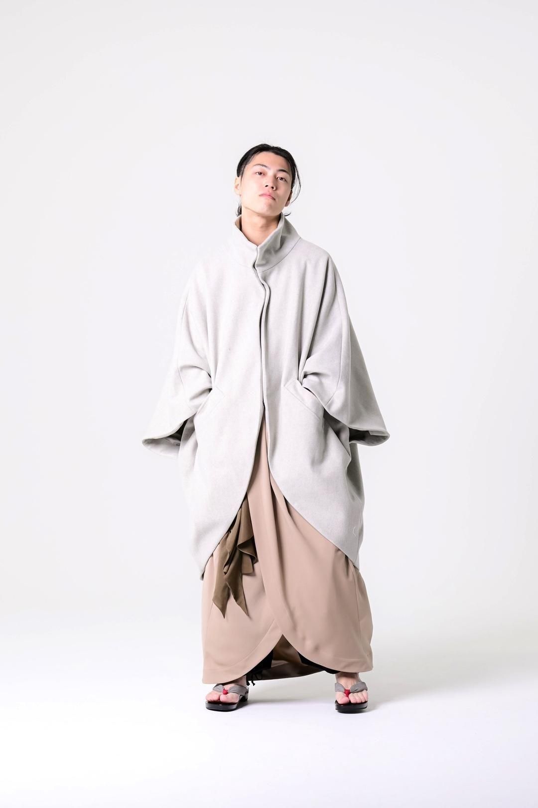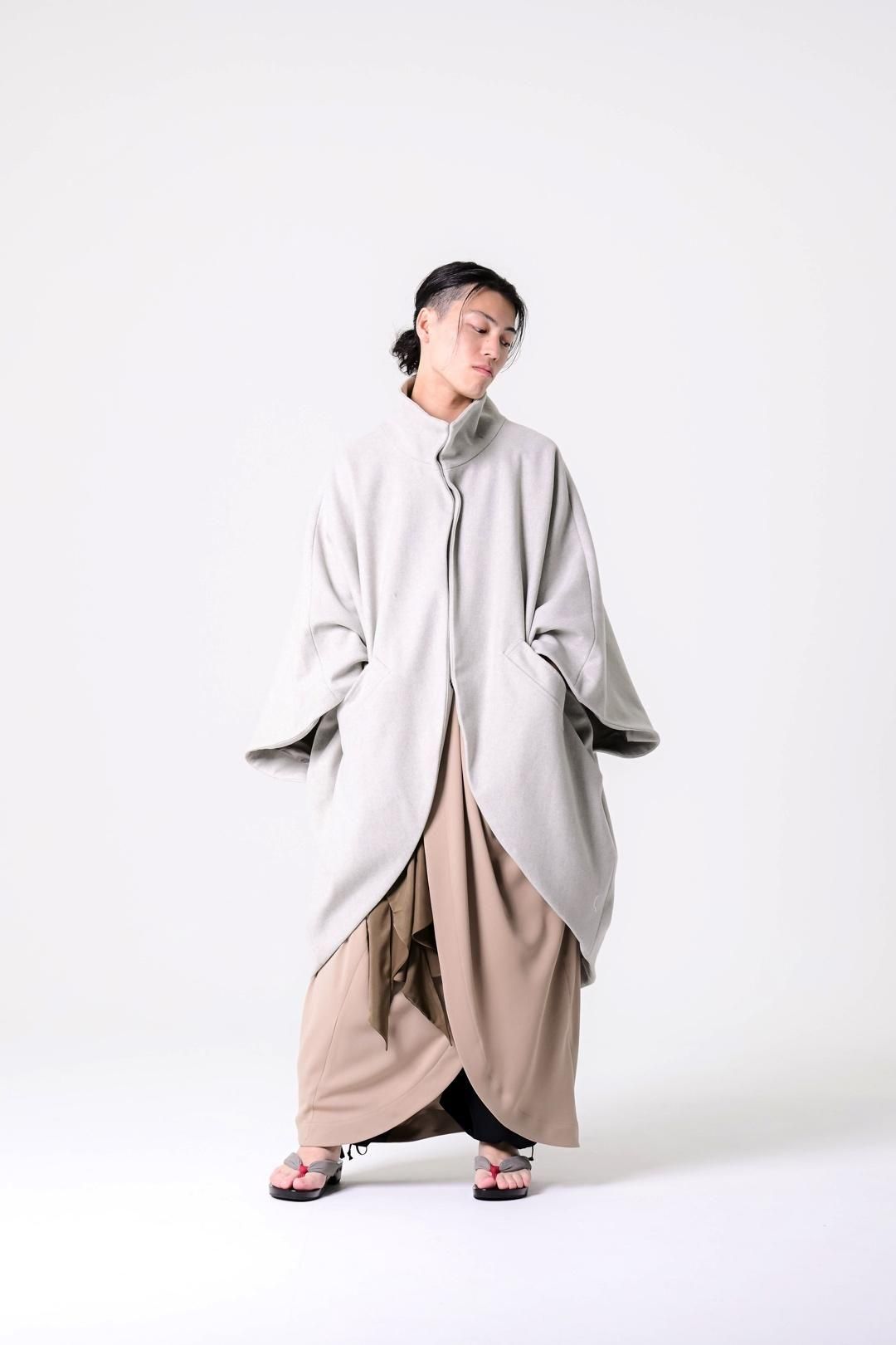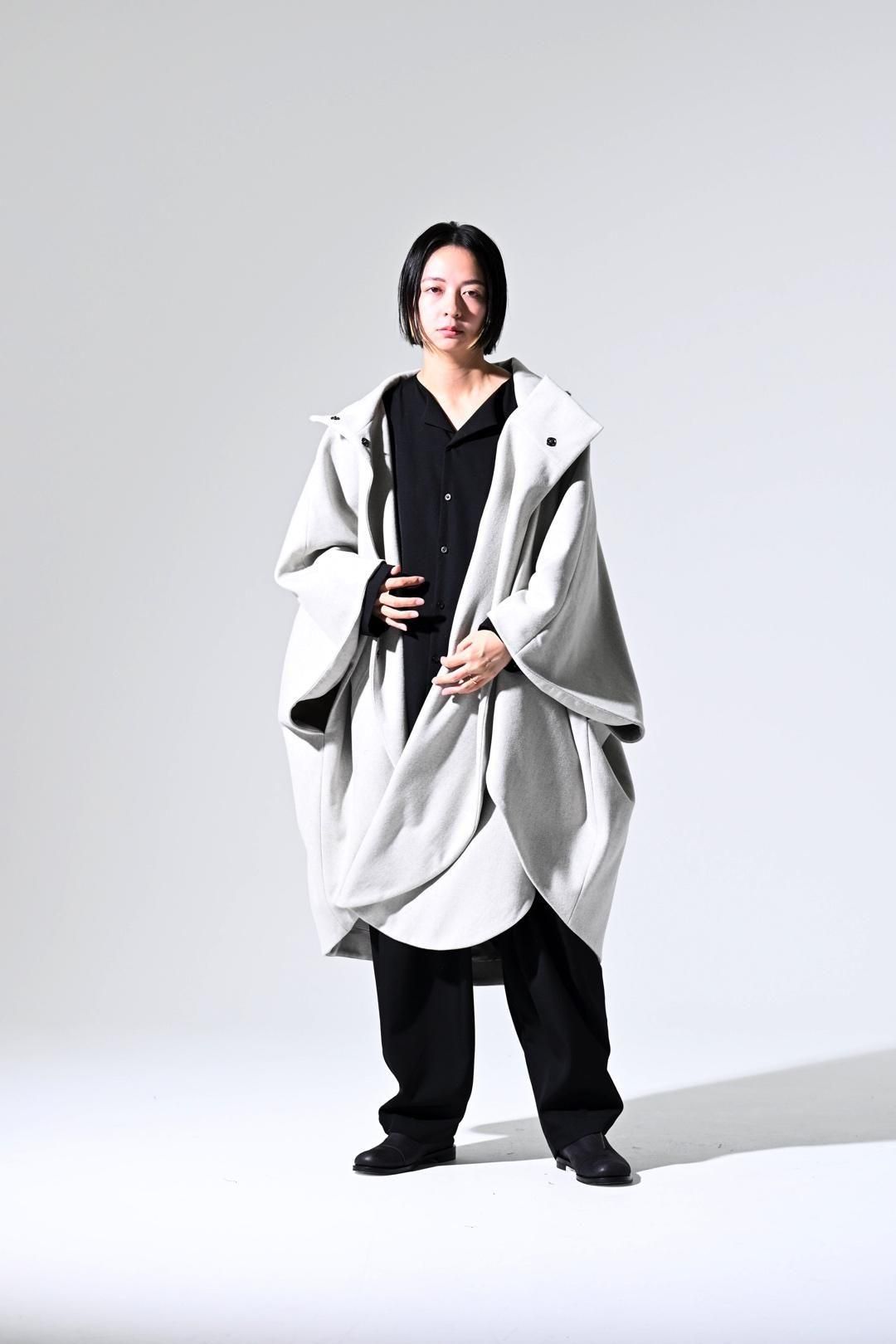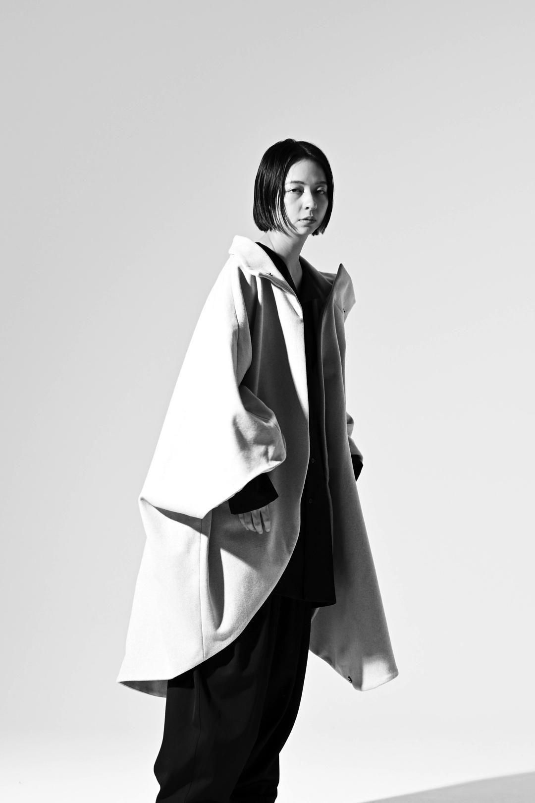 -インナーの枚数やサイズに縛られず、どんなシルエットの上にも包み込むように羽織ることが出来る最後のアウターを目指して制作しました-