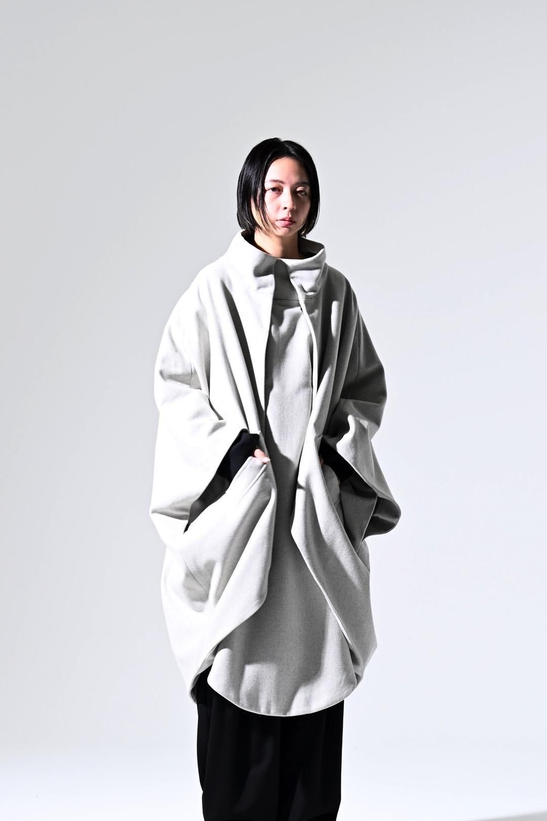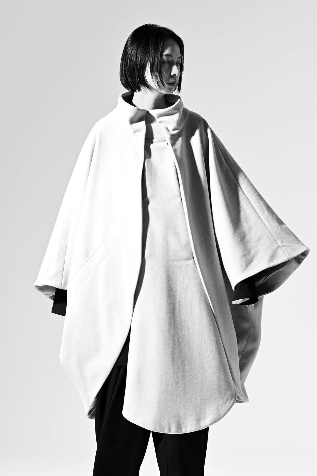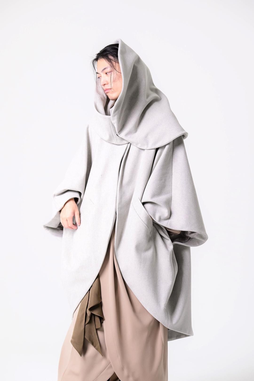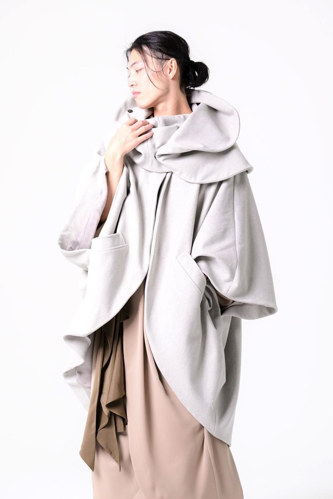 -インナーの枚数やサイズに縛られず、どんなシルエットの上にも包み込むように羽織ることが出来る最後のアウターを目指して制作しました-