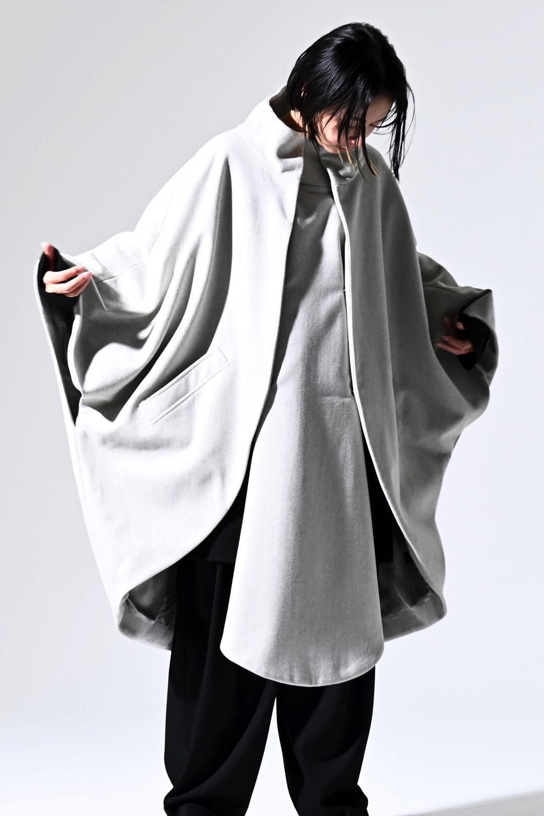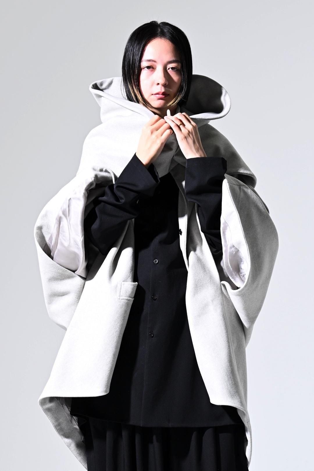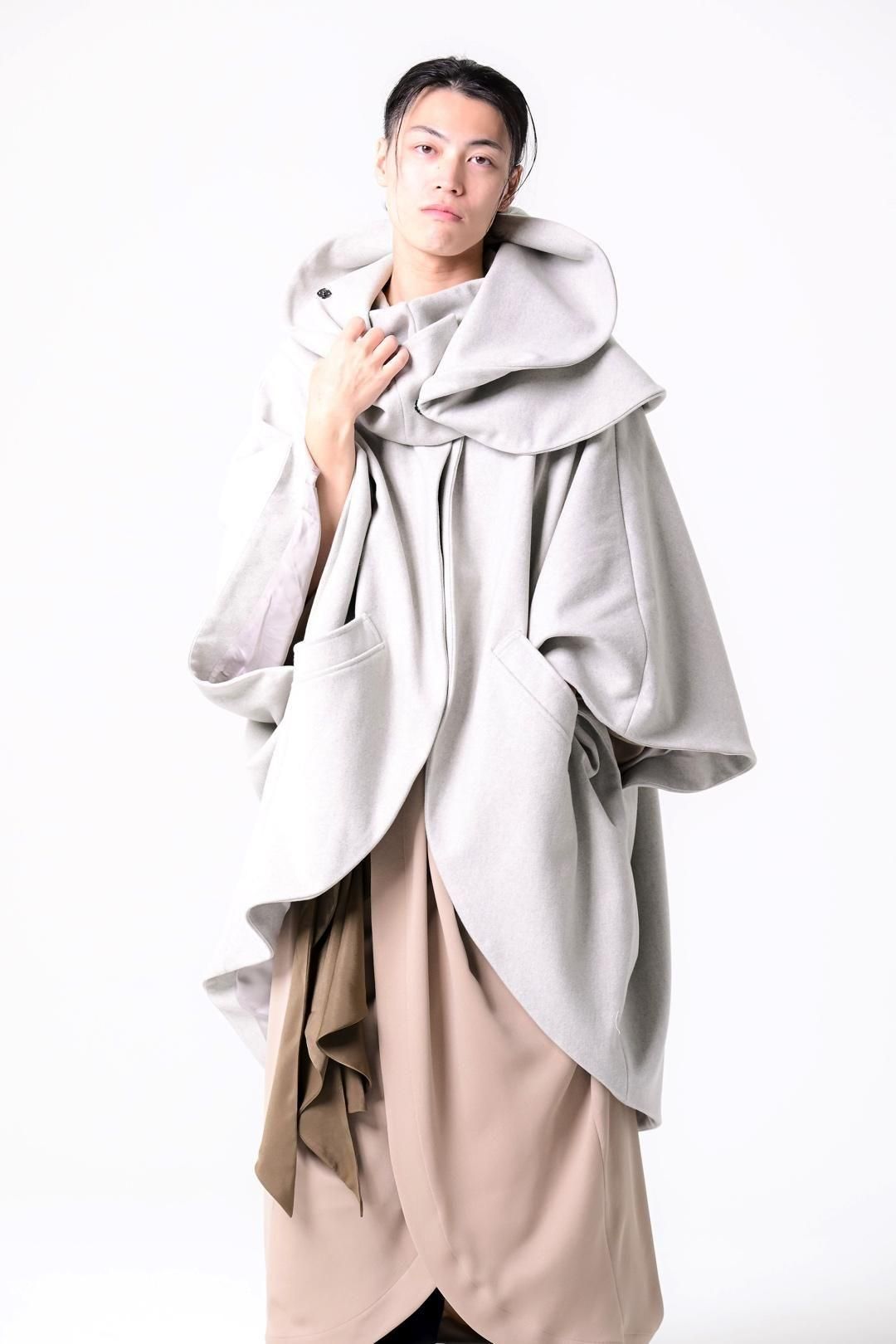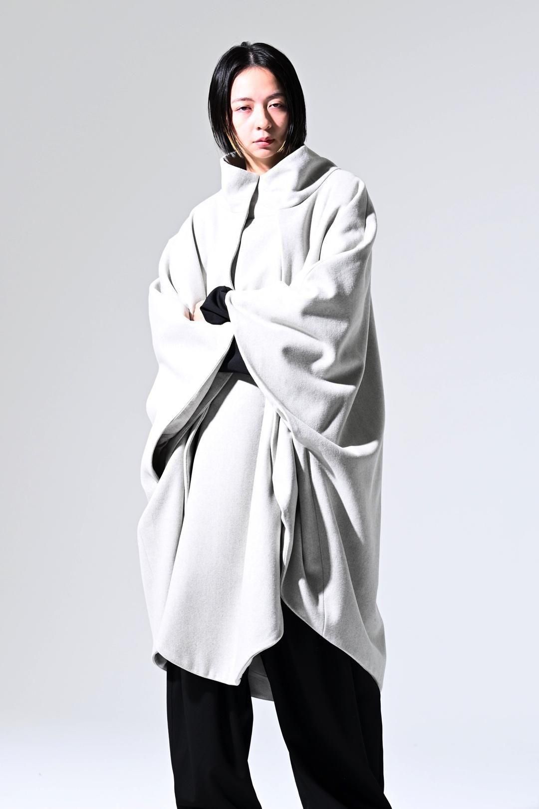 -インナーの枚数やサイズに縛られず、どんなシルエットの上にも包み込むように羽織ることが出来る最後のアウターを目指して制作しました-