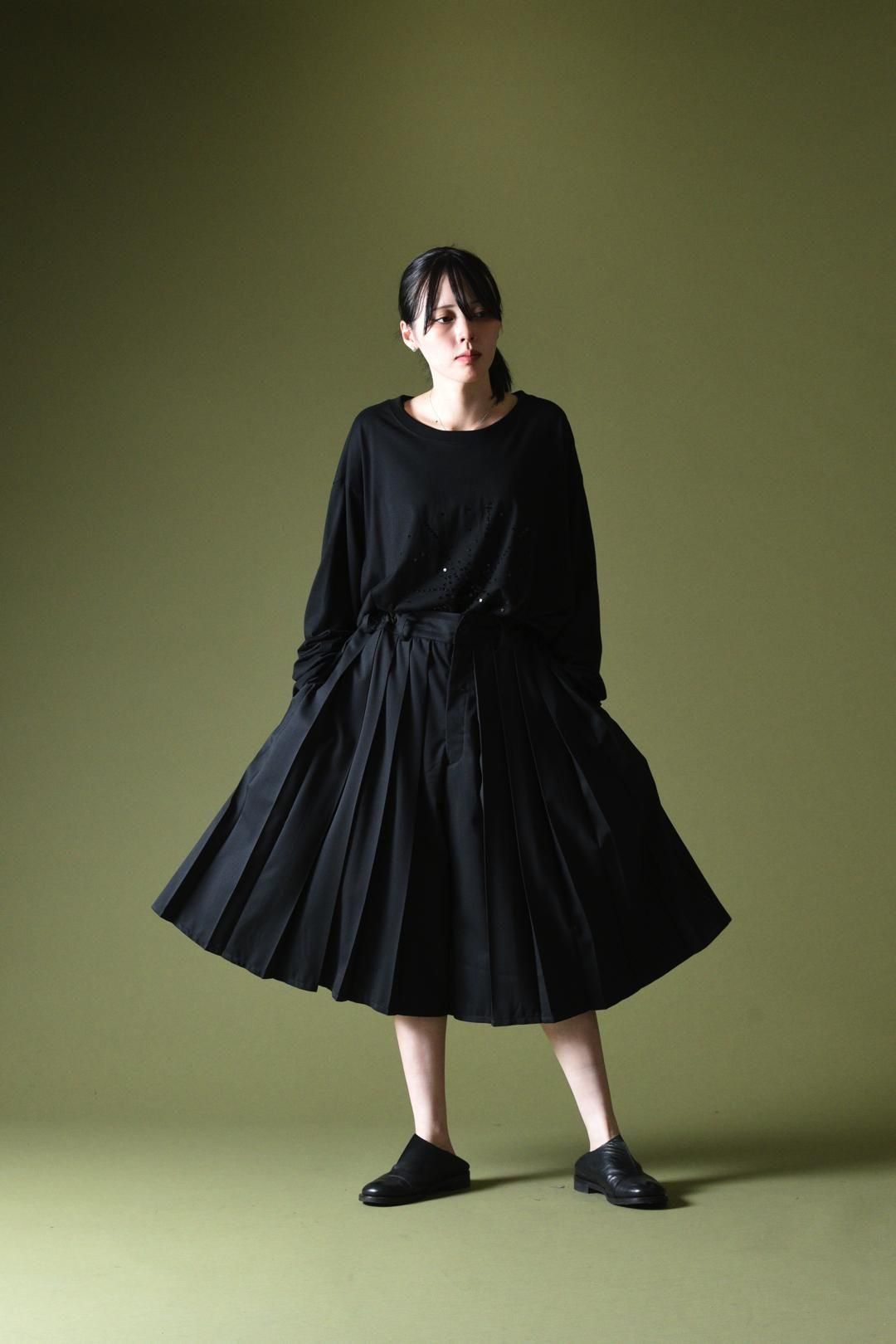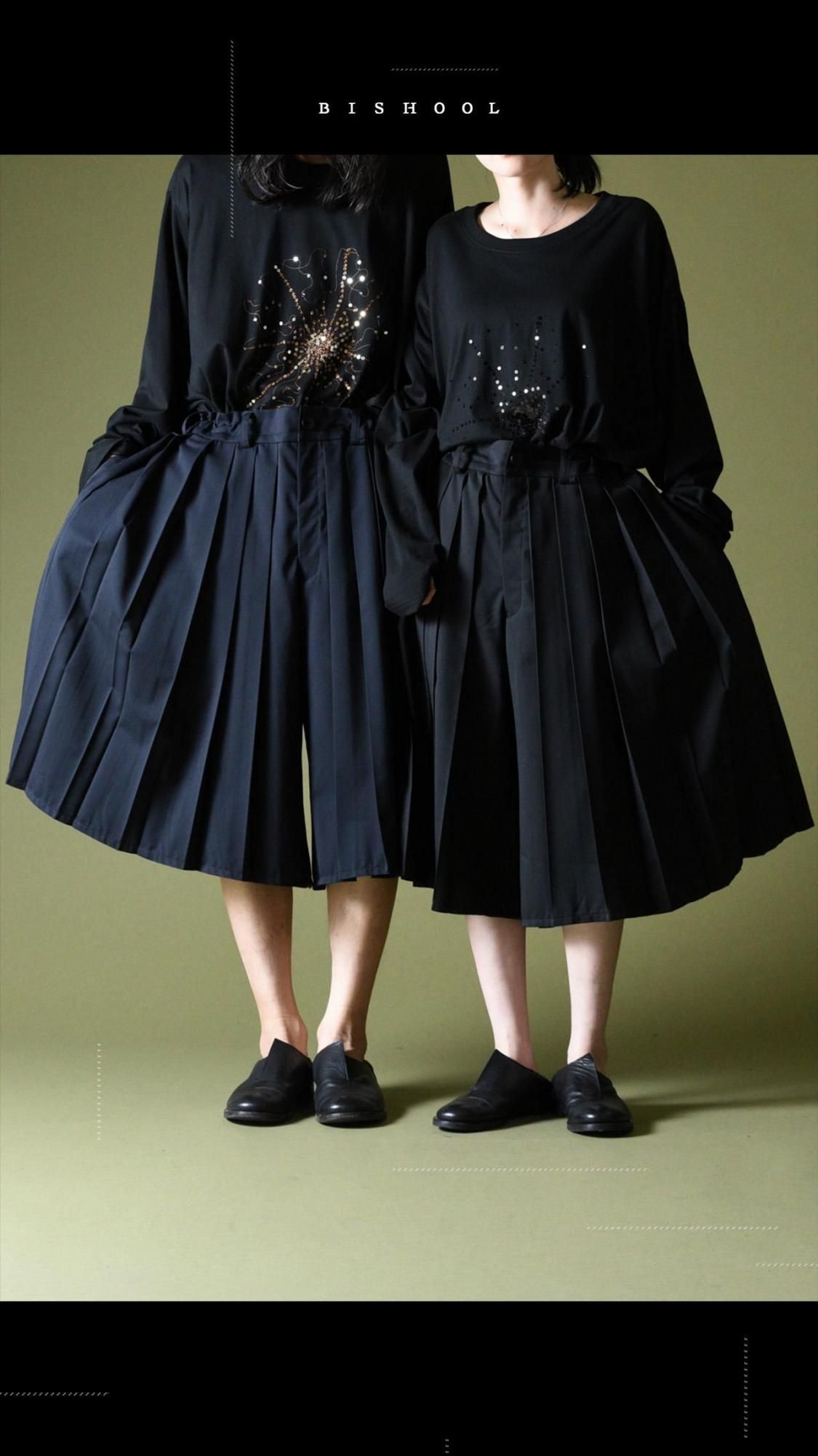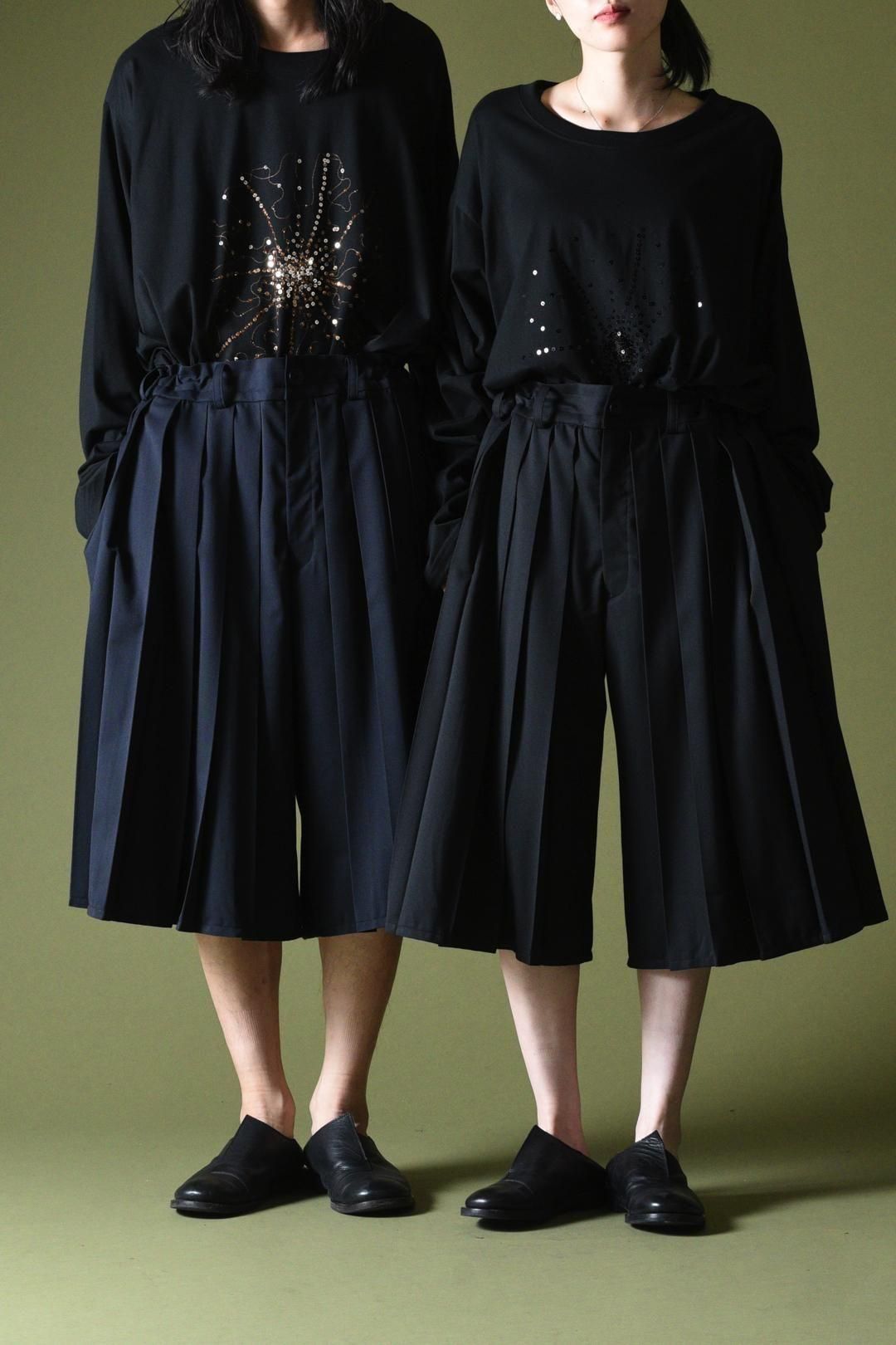 前後に施した太幅のプリーツによって「袴」の表情を高めた一本。