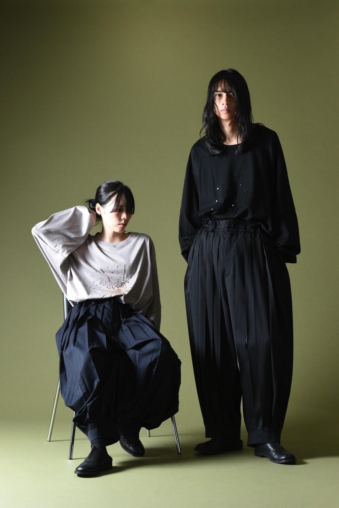 前後に施した太幅のプリーツによって「袴」の表情をプラスし、